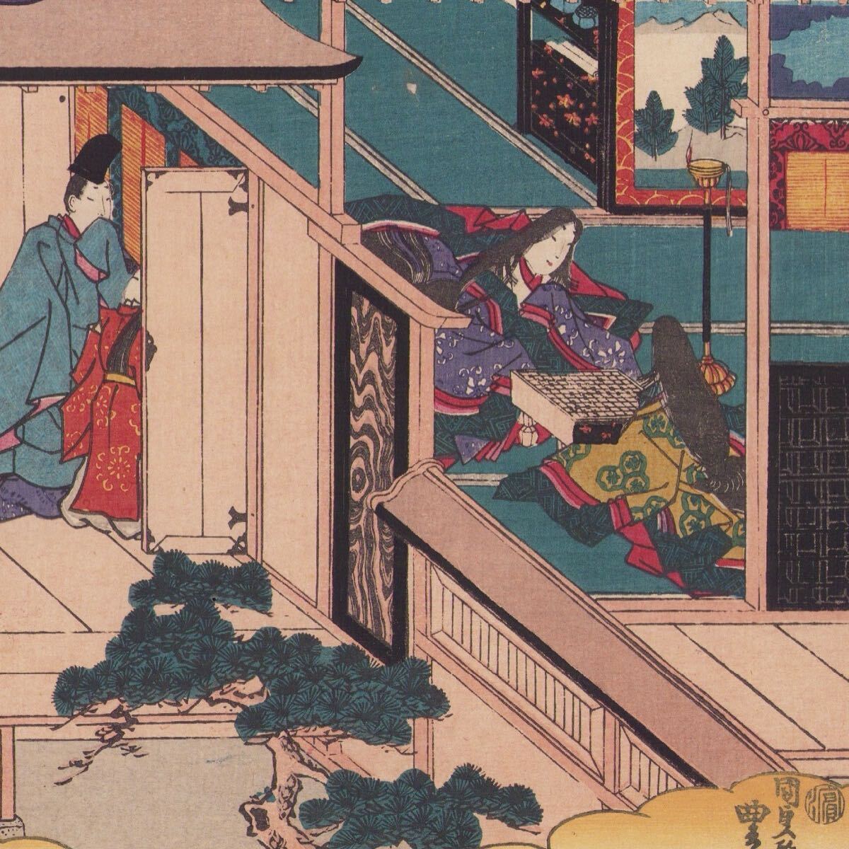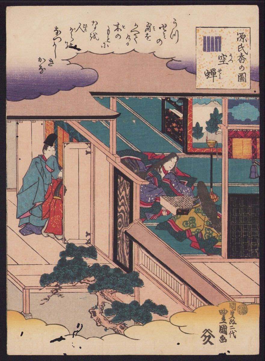 A12-10-3 空蝉 源氏香の図 豊国三代 本物 浮世絵 木版画 中判 錦絵 源氏物語 Kunisada JapanesePrints Ukiyoe【真作】