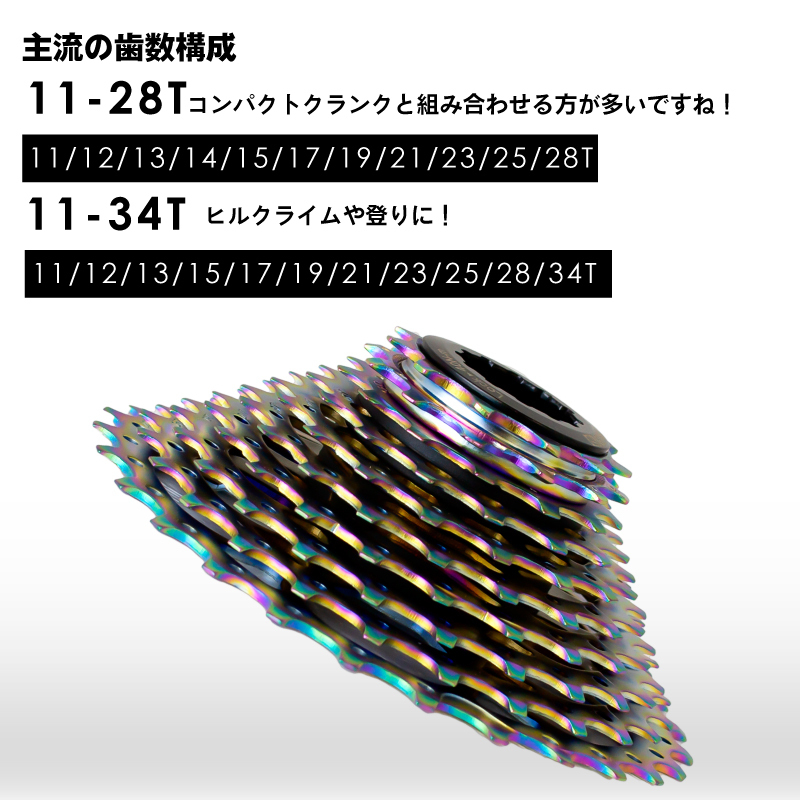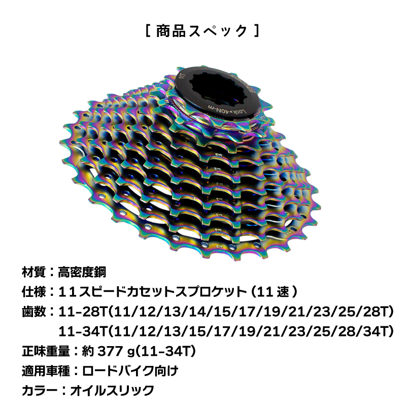 オイルスリックカラーで色でも映える自転車用スプロケット 歯数構成はメジャーな11-28Tとヒルクライムや登りで活躍する11-34T。 11-28Tはコンパクトクランクと組み合わせる方が多いですね。 急な坂でも安心の11-34T。 耐久性ある高密度鋼の材質 耐摩耗性-摩擦による表面の磨り減りを抑えることが可能です。 ロードバイクやクロスバイクなどに最適です。 材質高密度鋼 仕様11スピードカセットスプロケット(11速) 正味重量約377 g(11-34T) 適用車種ロードバイク向け カラーオイルスリック ご注意・商品画像は10速タイプです。 ・【初期不良の場合】 ・到着後3日以内にご連絡頂いた場合商品保証させて頂きます。 ・(3日以内にご連絡頂けない場合はご対応出来なくなります) ・商品は入荷によりキズがある場合があります。 ・保証対象外になりますのでご了承お願い致します。 ・ディスプレイ環境により実物と色が異なる場合が有ります。 ・入荷時期により予告無く一部仕様変更する場合が有ります。 |