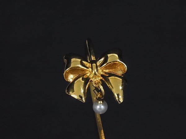 ■美品■ MIKIMOTO ミキモト 本真珠 アコヤ真珠 パール 約3mm リボン ブックマーク ブックマーカー 栞 しおり ゴールド系 DK7406