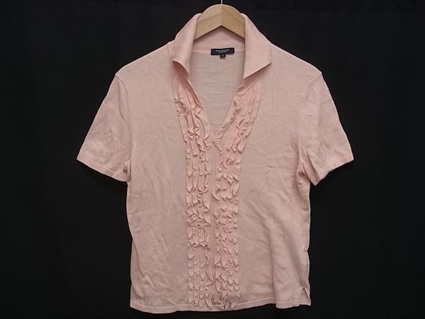 ■美品■ BURBERRY バーバリー コットン×ナイロン フリル 半袖 ニット トップス 表記サイズ 2 洋服 レディース ピンク系 DI7541