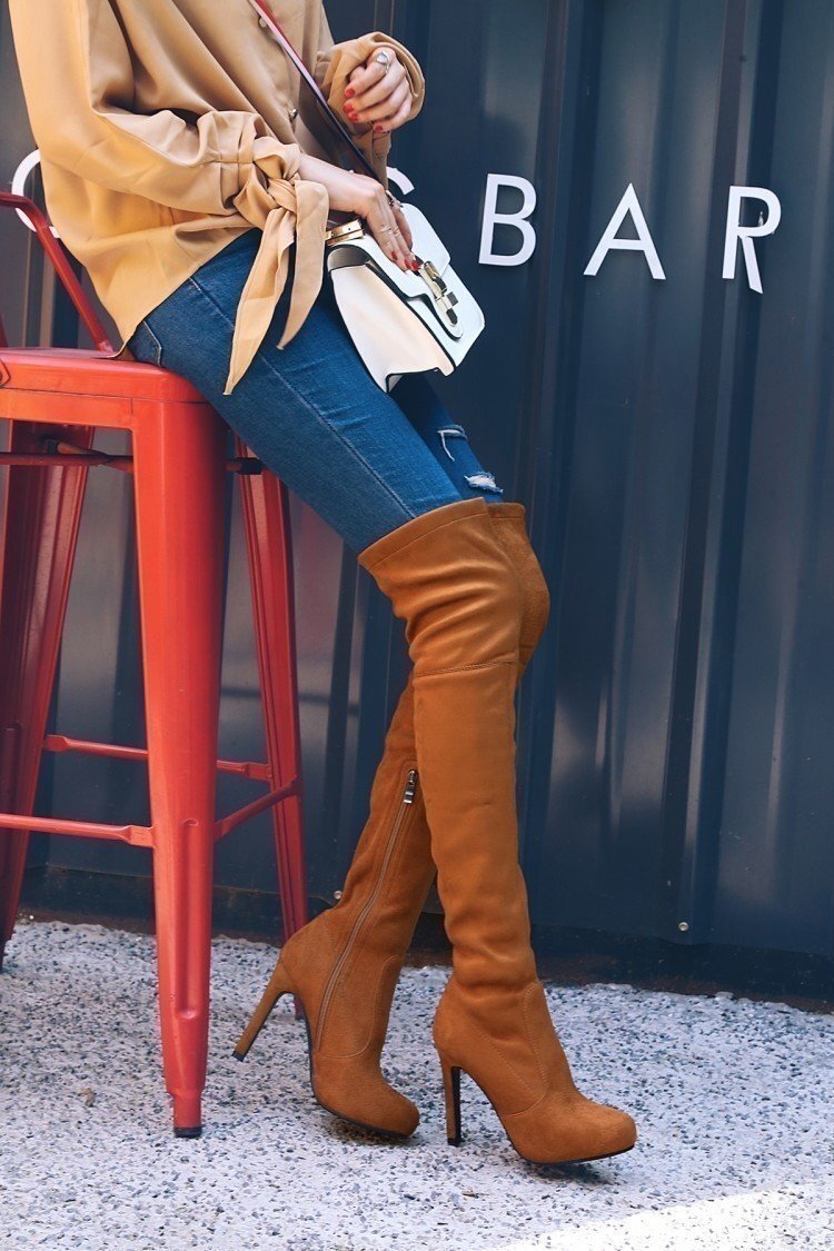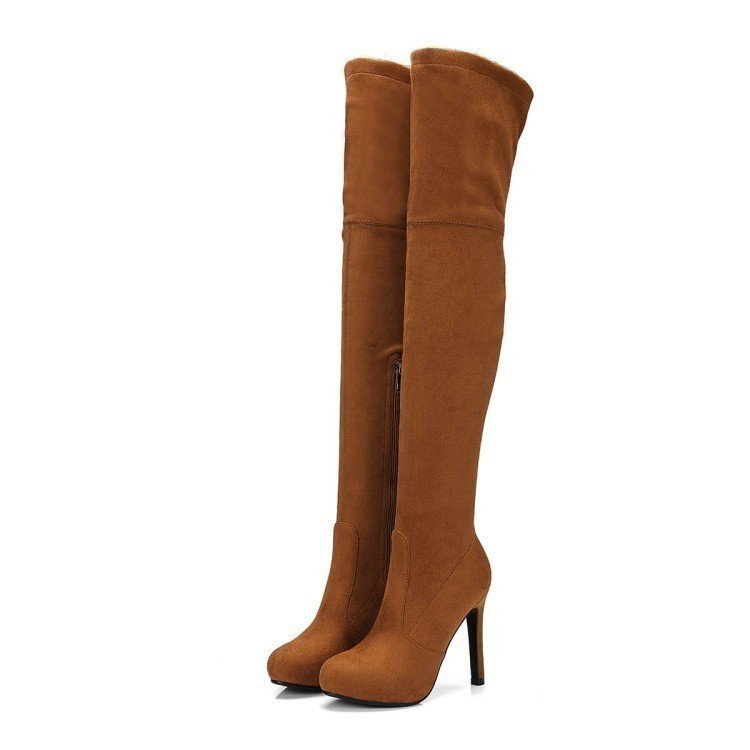 秋冬 フロック ニーハイブーツ ブラウン 23.0cm レースアップ ロングブーツ ハイヒール ブーツ 腿高 靴 美脚 新品 ☆198
