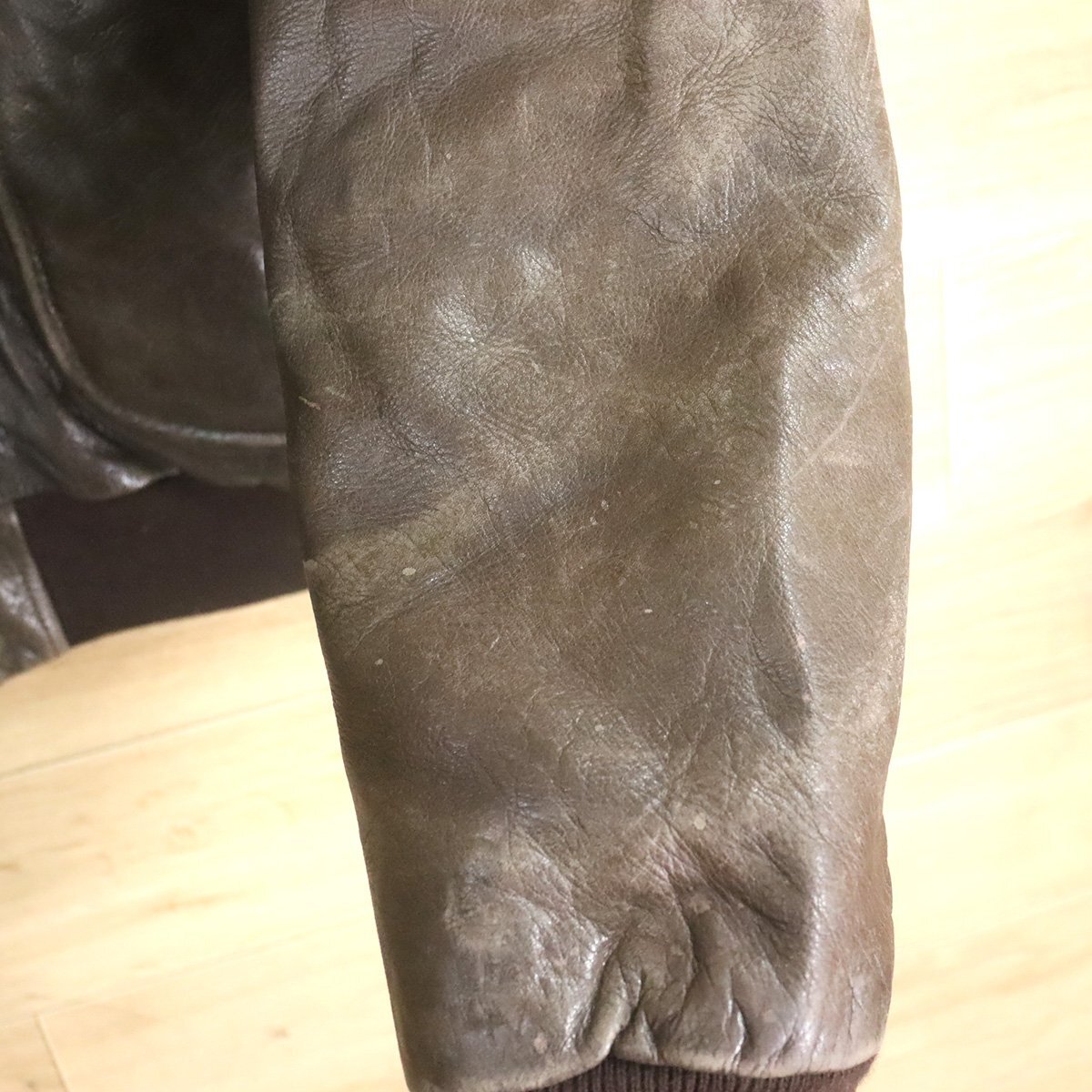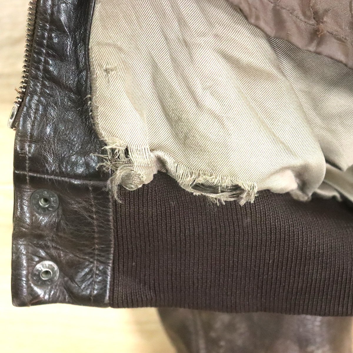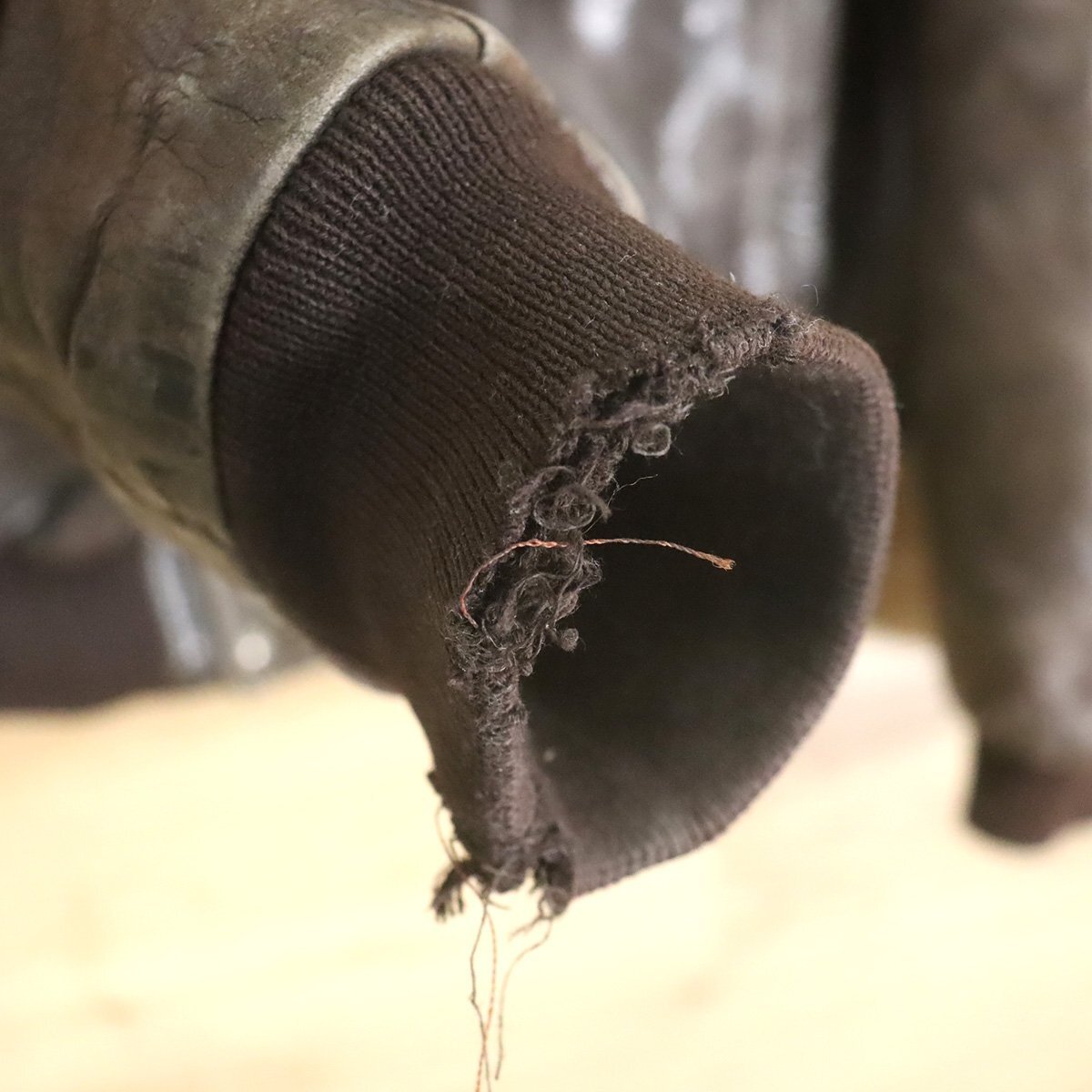 中古品です。使用感があります。経年による擦れや汚れと色褪せ、リブにホツレ、裏地(袖・裾)の破れといったダメージがございます。