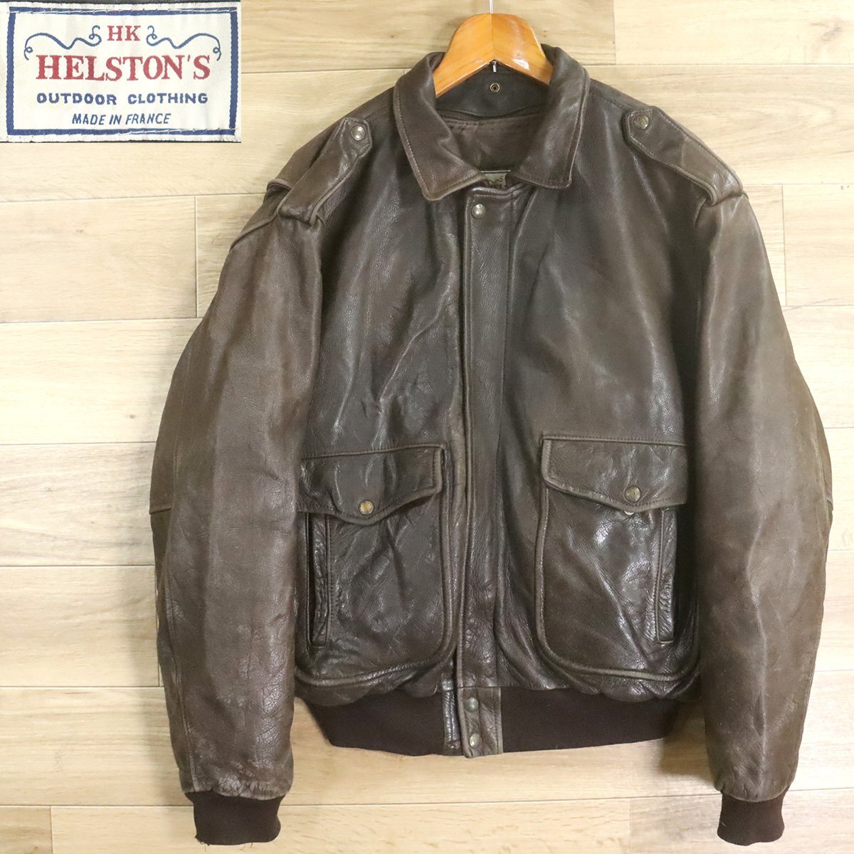B2S/D12.5-3 ユーロ古着 HELSTON'S A-2 フライトジャケット 本革 レザージャケット ライナー付き メンズ XL ヴィンテージ