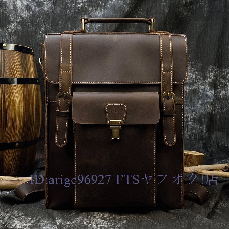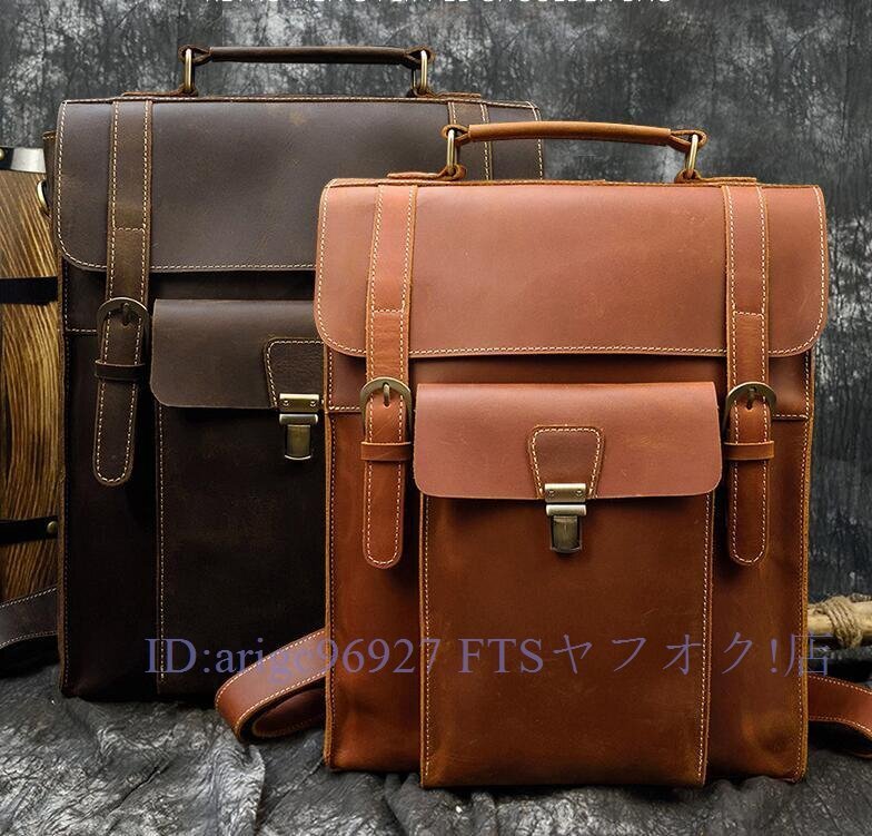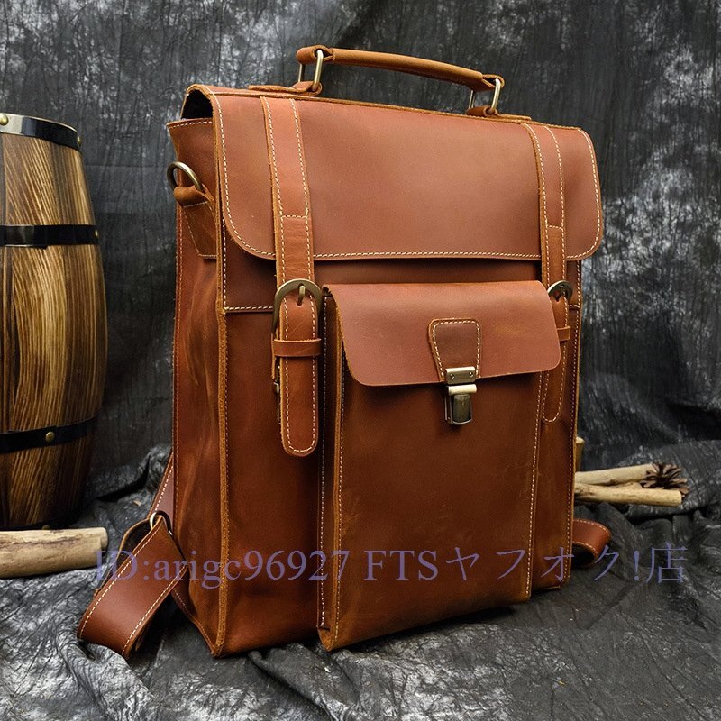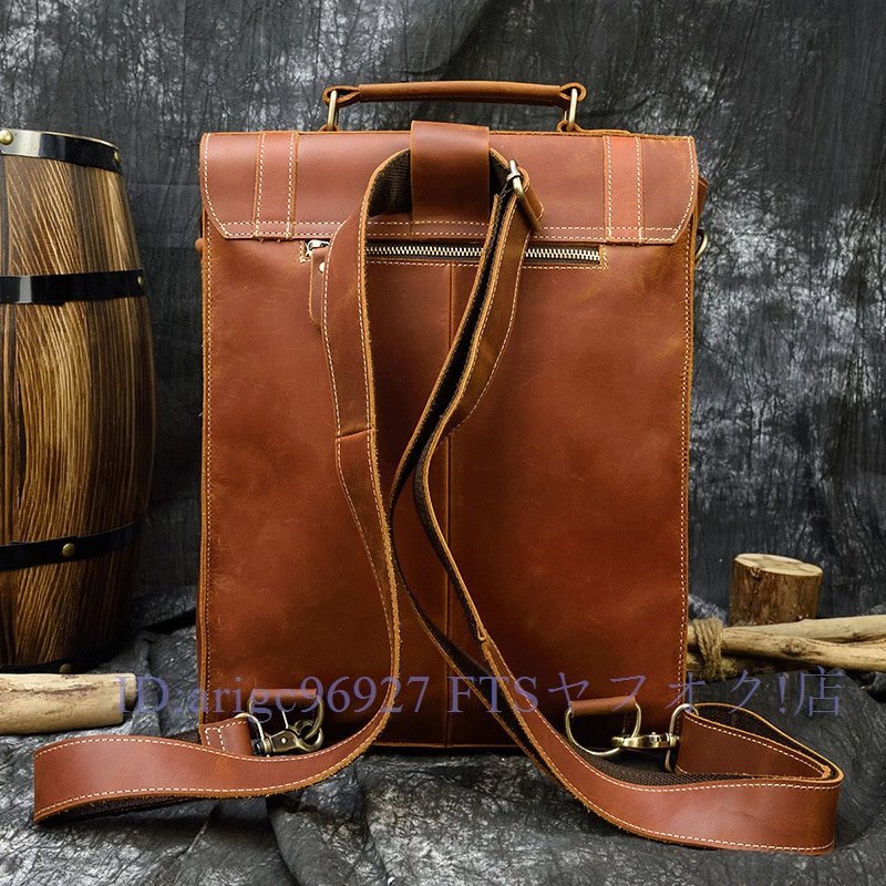 ★新品大容量 派手 ヌメ革 書類鞄 ハンドメイド ショルダーバッグ 斜めがけ ハンドメイドリュックバッグ 牛革 ブラウン