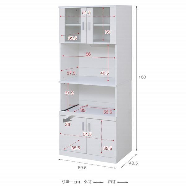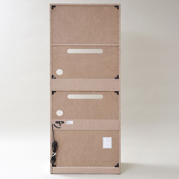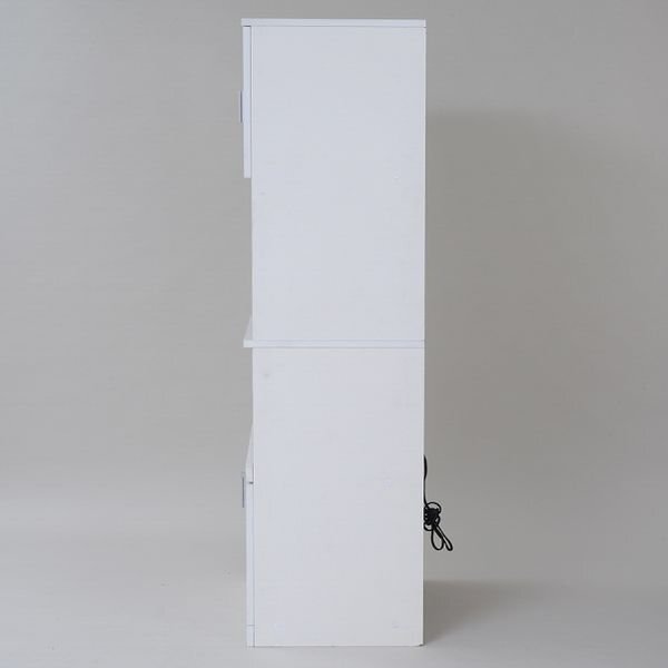 | 【カラー】 ホワイト 【サイズ】 <外寸> 幅59.5×奥行40.5×高さ160cm <内寸> 上部扉内:幅51.5×奥行35.5×高さ35cm 下部扉内:幅51.5×奥行35.5×高さ35.5cm オープン部:幅56×奥行37.5×高さ40.5cm スライド部:幅53.5×奥行35×高さ31.5cm スライド引き幅:26cm 可動棚:幅56×奥行35×厚み1.5cm(3.2cmピッチ3穴) 【材質】 本体:プリント紙化粧合板 オープン部:合成樹脂化粧合板(塩化ビニル樹脂) スライド部:合成樹脂化粧パーティクルボード(塩化ビニル樹脂) 【生産国】 マレーシア 【梱包】 2梱包でお届けします。 (2-1) サイズ:86.5×43.5×18cm、重量:24kg (2-2) サイズ:85×43×11.5cm、重量:16kg 【耐荷重】 可動棚/スライド棚:(約)5kg以下 天板:(約)7kg以下 【その他】 ・2口コンセント(合計1500W)/コード長さ180cm ・可動棚:2枚 【組み立て品】 お客様による組み立てが必要です。 |