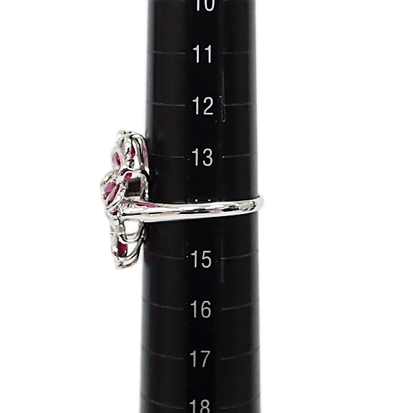 【セール開催中】ルビー リング ダイヤモンド サファイア K18ホワイトゴールド 花 フラワー 植物 ボタニカル 送料無料 中古 宝正 903393
