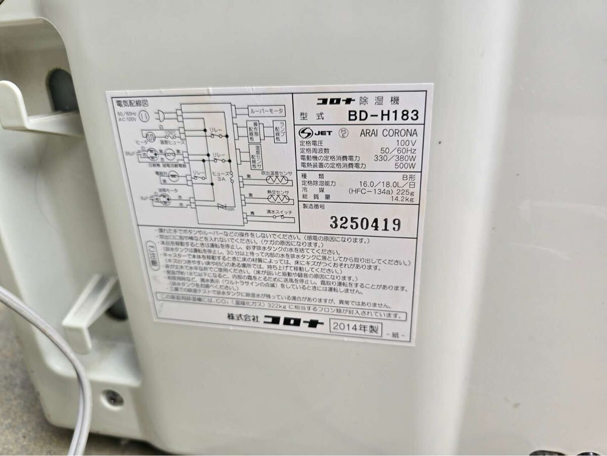★エンジン始動確認★ コロナ CORONA BD-H183 2014年製 衣類乾燥除湿機 中古ジャンク (Z)