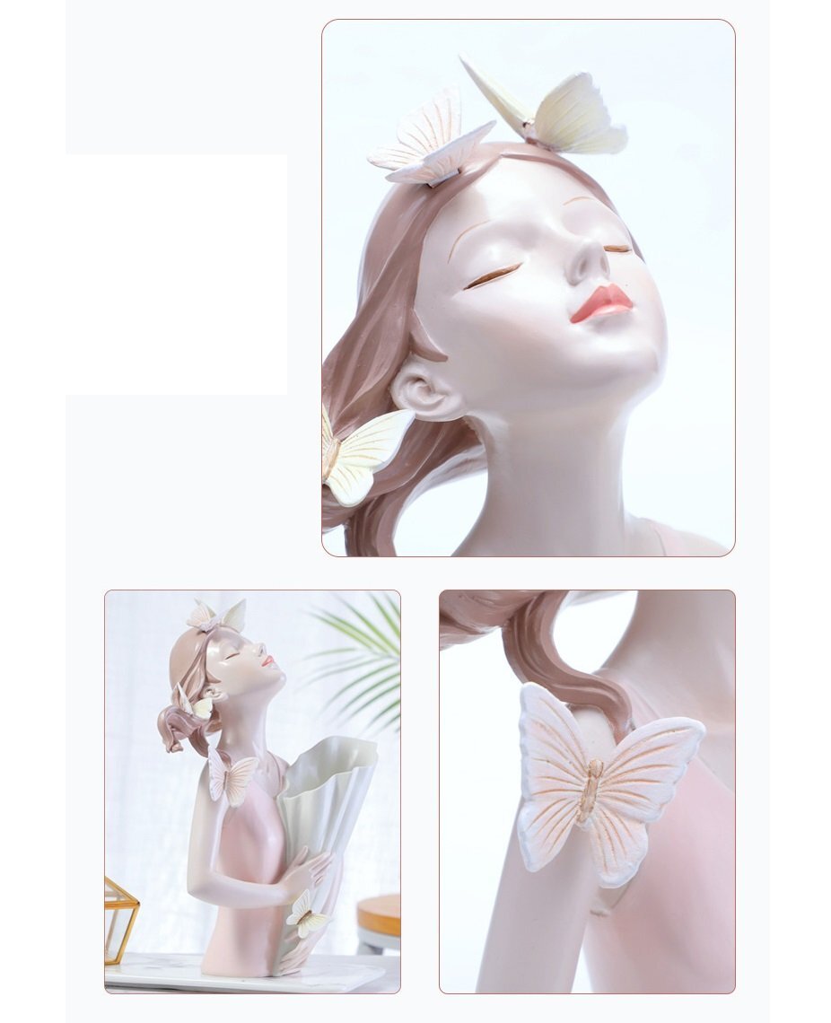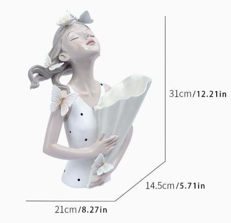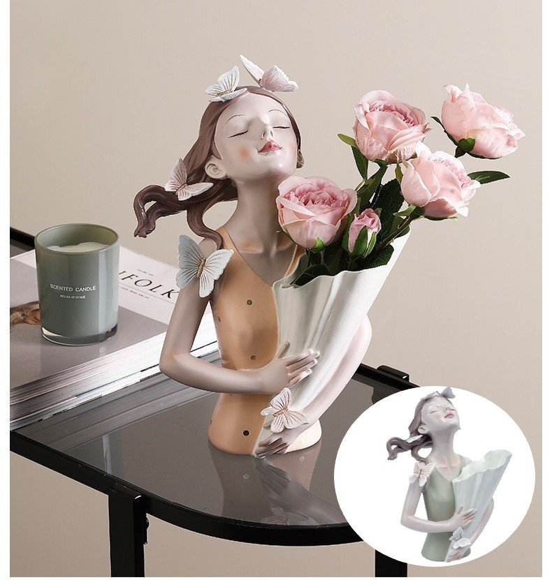 花瓶 花束を抱える少女 グリーン 樹脂 花瓶 モダンアート花瓶 オブジェ インテリア 小物 n938