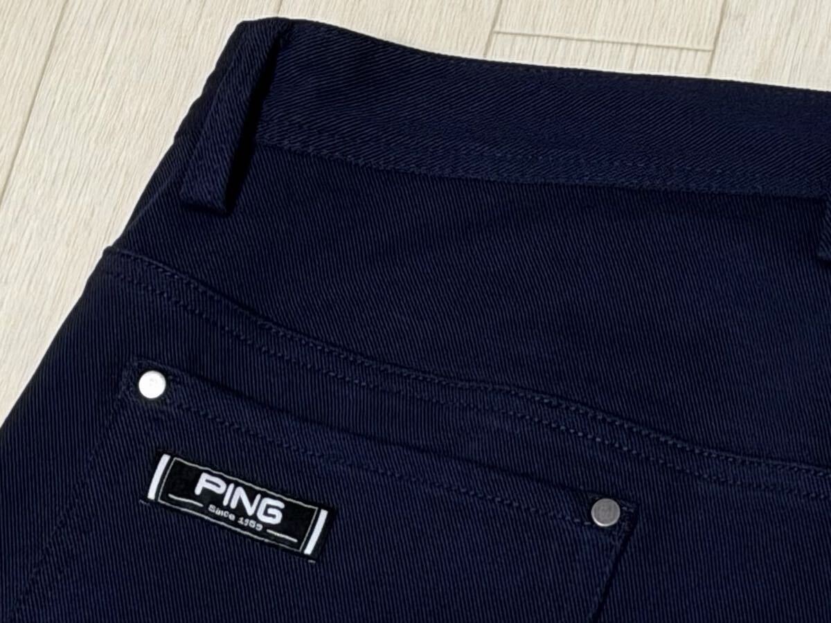 | ~秋冬モデル ピン PING 正規品~ ピン PING ゴルフウェア Mr.PING刺繍 5ポケット CROSS MOVING ツイル ストレッチパンツ 新品です。 PINGのマスコットキャラクターのMr.PINGをバックポケットにあしらった、全方向ストレッチツイル5ポケットパンツ。全方向によく伸縮して動きやすく快適な履き心地を実現してくれる、ボトムストレッチ素材のクロスムービングを採用しています。カジュアルからキレイめまで幅広いスタイルに対応する、脚長効果を発揮する美シルエットが特徴の一本です。 株式会社TSIの商品です。ご安心下さいませ。 サイズ:L(ウエスト80-84cm) 【サイズ表】 L : 股上28、股下79、裾幅17 LL : 股上28.5、股下80、裾幅17.5 3L : 股上29、股下81、裾幅18 素 材:ポリエステル 45% コットン 44% ポリウレタン 11% カラー:ネイビー 特 長:【CROSS MOVING】 クロスムービング 動きやすく快適な着心地の素材を使用しています。 定 価:11,000円(税込) 格安出品です。必ず自己紹介欄をご覧になり入札を頂きます様、よろしくお願い致します。 | |||