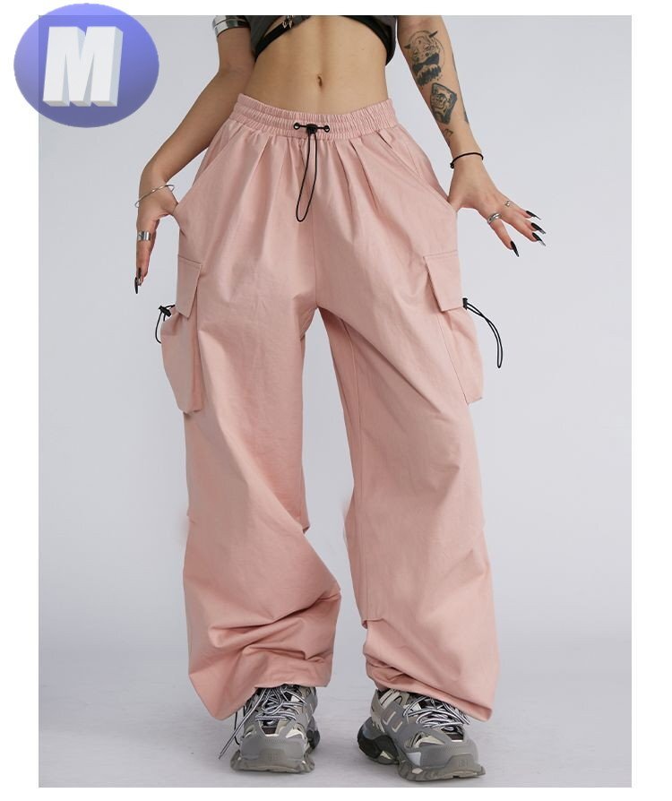 カーゴパンツ ピンク レディース M ワイド ストリート ダンス アウトドア ウエストゴム