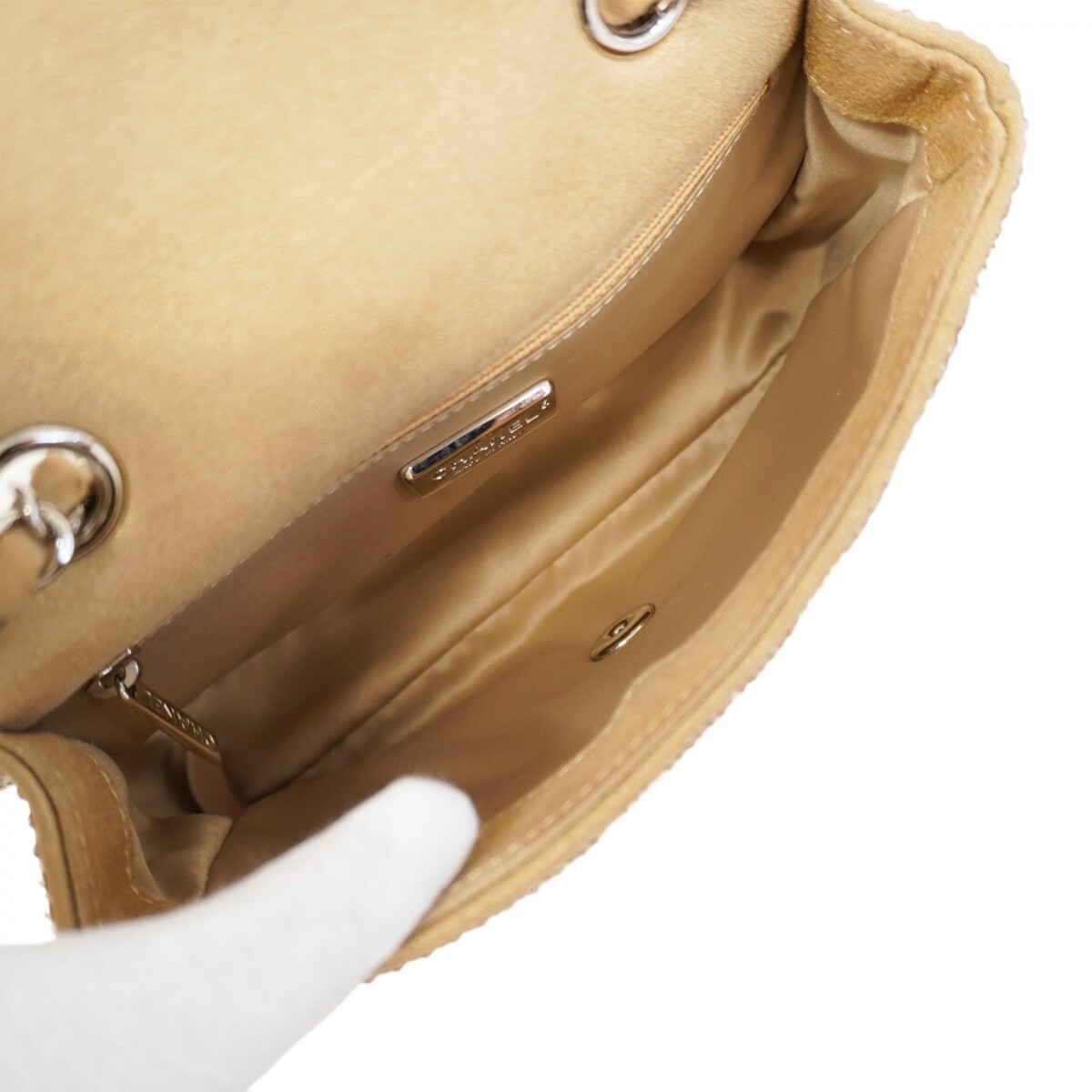 ★SALE【5oe5981-h】シャネル ショルダーバッグ チェーンショルダー スウェード ストーン ベージュ シルバー金具【中古】レディース