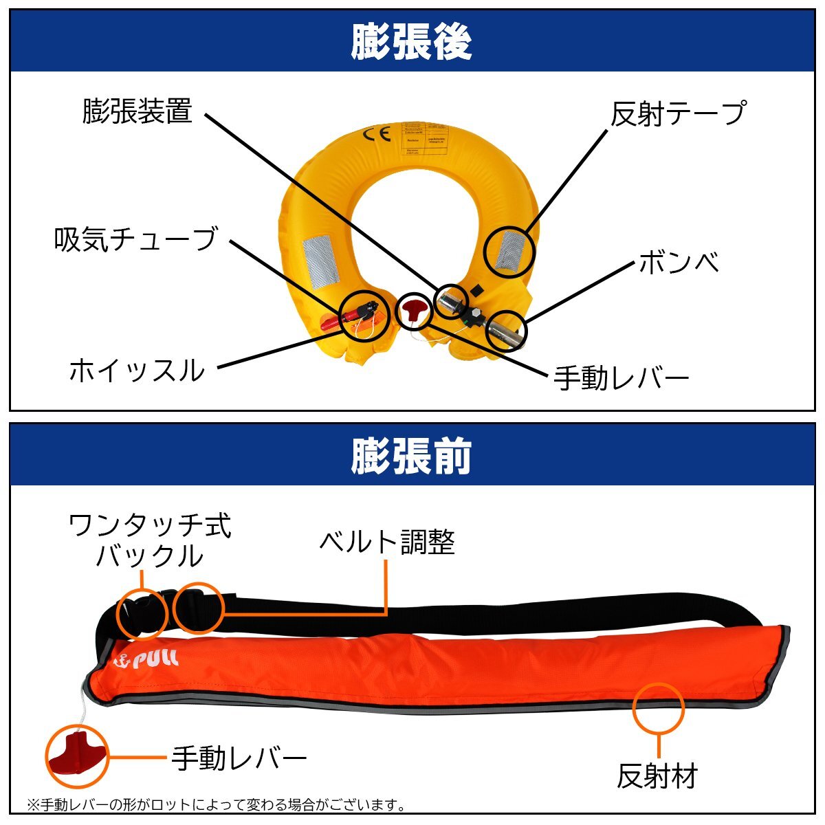 オリジナルカラー多数! ライフジャケット 自動膨張式 腰巻 腰 ベルトタイプ オレンジ/橙色 ウェスト固定式 ※男女兼用! フリーサイズ