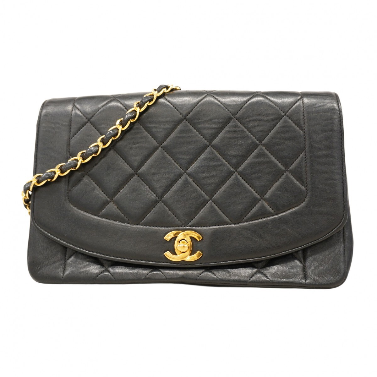 ★SALE【5oe5571-h】シャネル ショルダーバッグ マトラッセ チェーンショルダー ダイアナ ラムスキン ブラック ゴールド金具