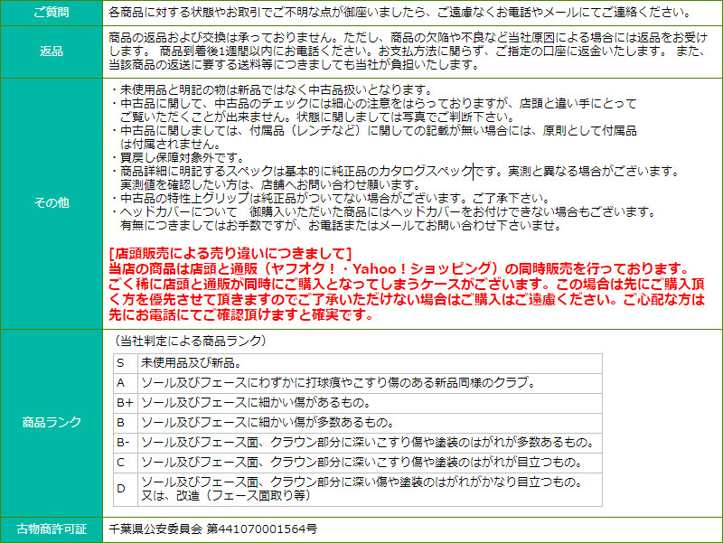 | ヘッドカバー | 【B 】傷あり | グリップ | 【B 】傷あり (非純正) |