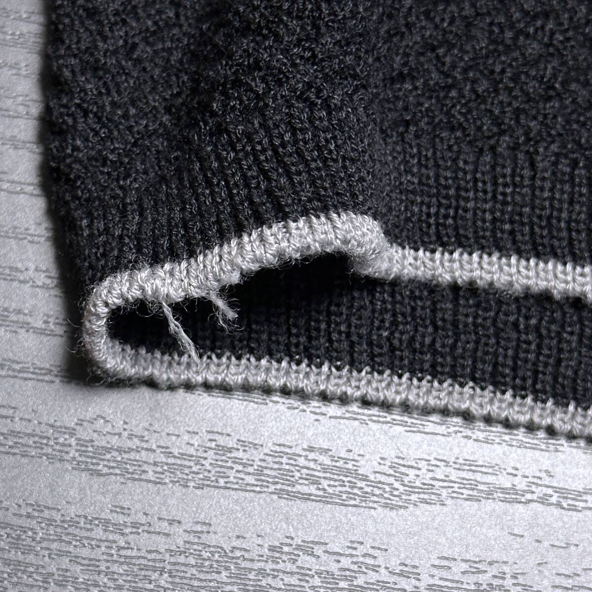 袖口や裾に多少毛羽立ち、右裾一部糸切れ、袖口若干糸の飛び出しなど使用感はありますが、目立つほどの傷や汚れはありません。