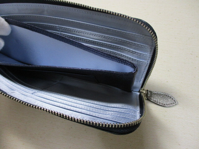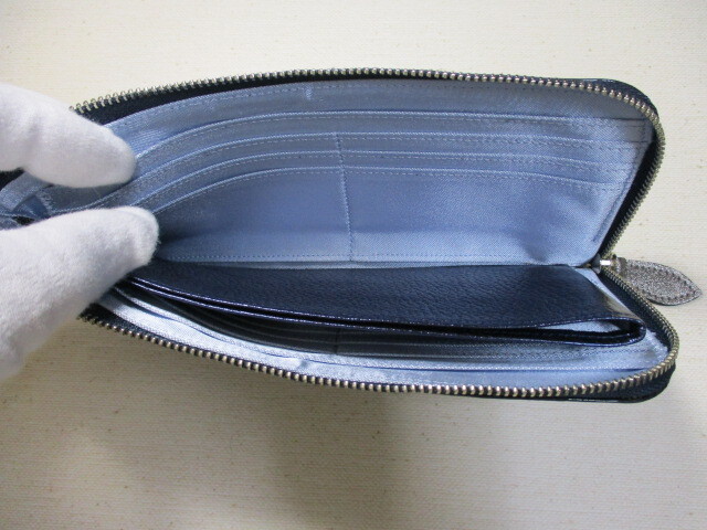 訳あり 新品 財布 レディース 長財布 Mano da Mana ブランド 本革 牛革 スリムデザイン ブルー