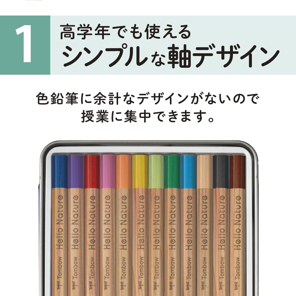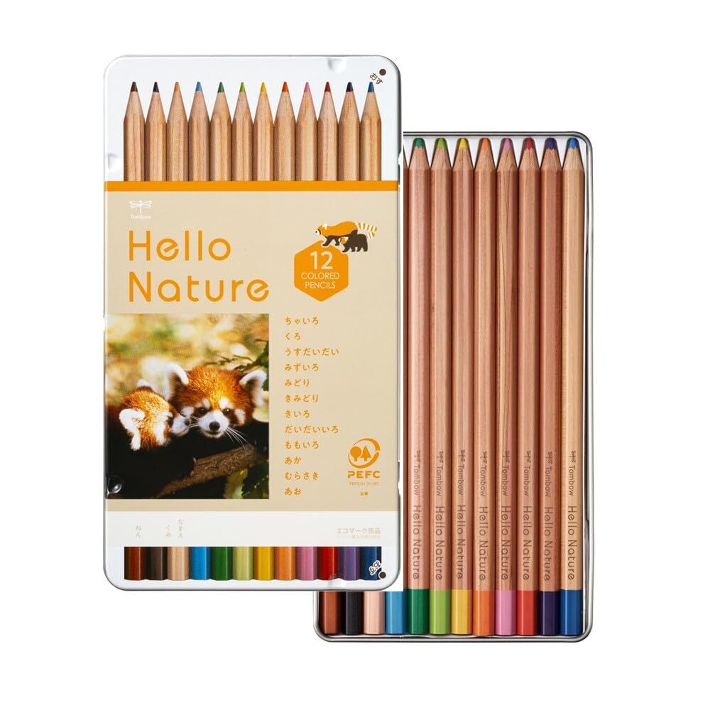 トンボ鉛筆 色鉛筆 12色 (六角軸) 小学生 (6年間使えるシンプルデザイン) ハローネイチャー レッサーパンダ CB-KHNLP0312C
