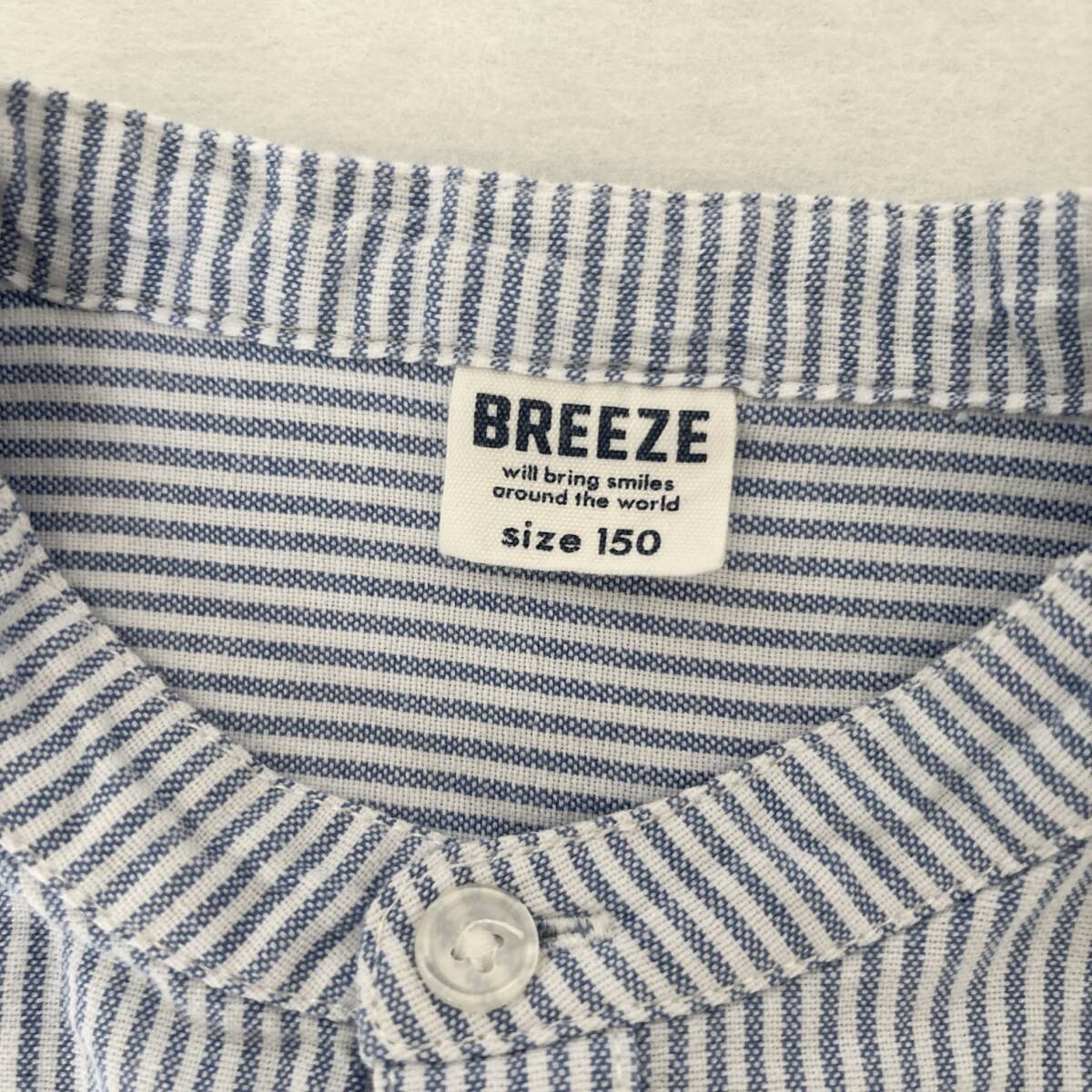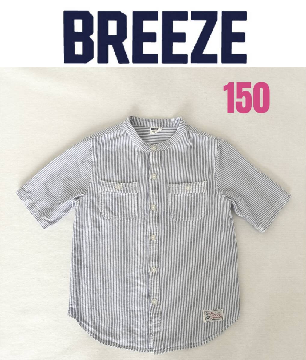 ★★ご覧いただきましてありがとうございます。大人気のBREEZE 半袖シャツ ストライプ柄 スタンドカラーシャツ 150 美品 送料無料 キッズ 子供服 男の子です。