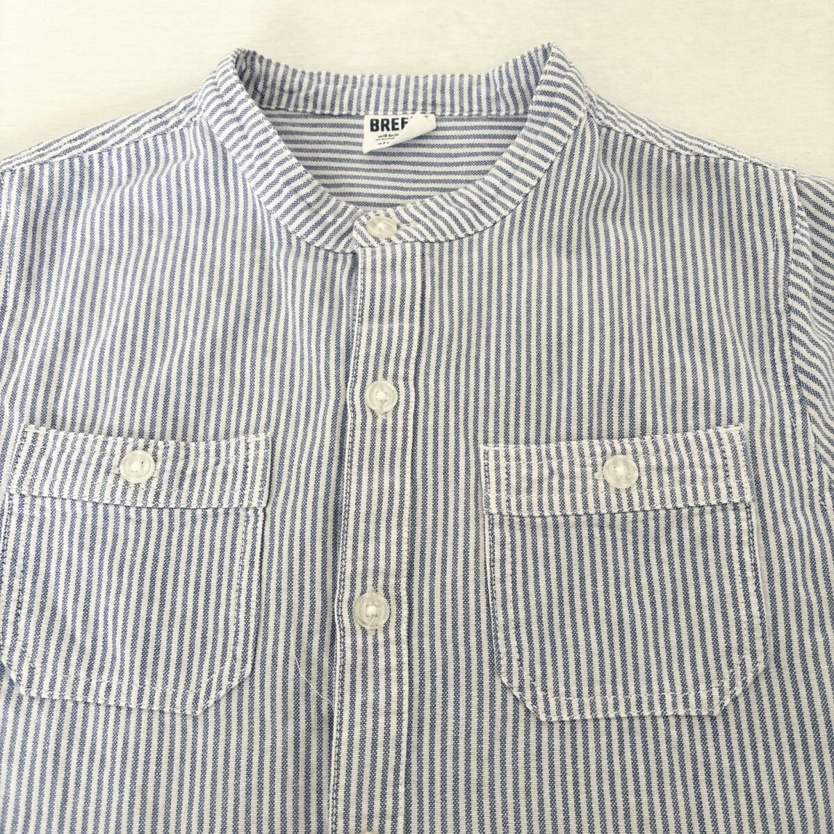 BREEZE 半袖シャツ ストライプ柄 スタンドカラーシャツ 150 美品 送料無料 キッズ 子供服 男の子 水色