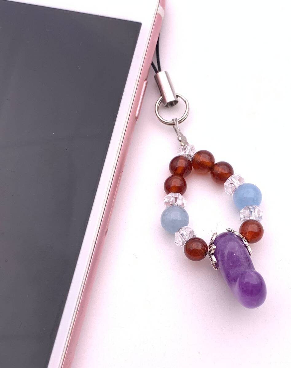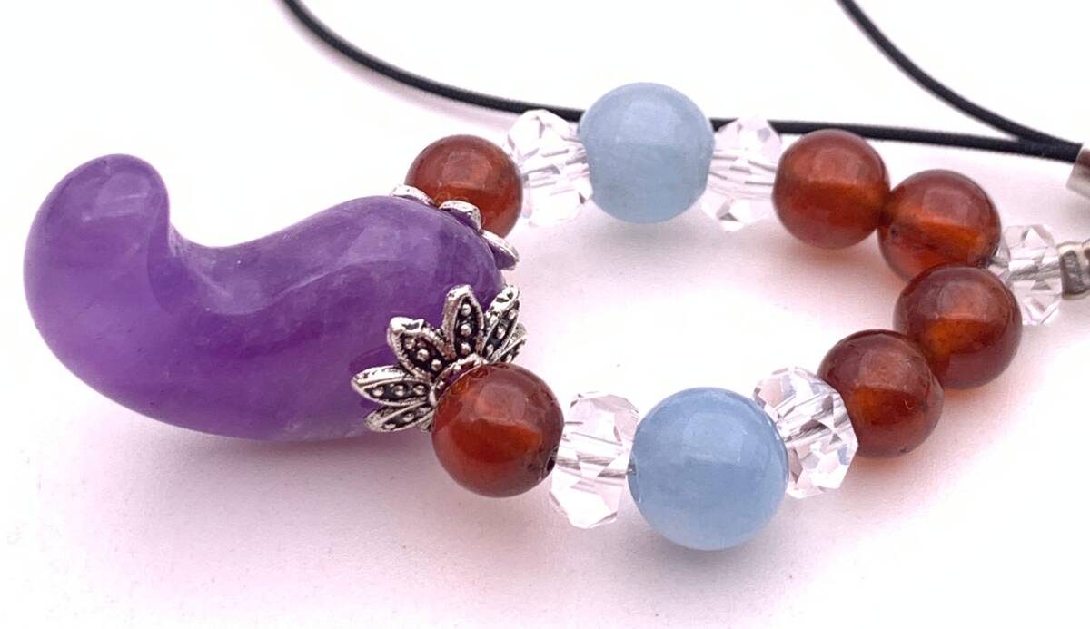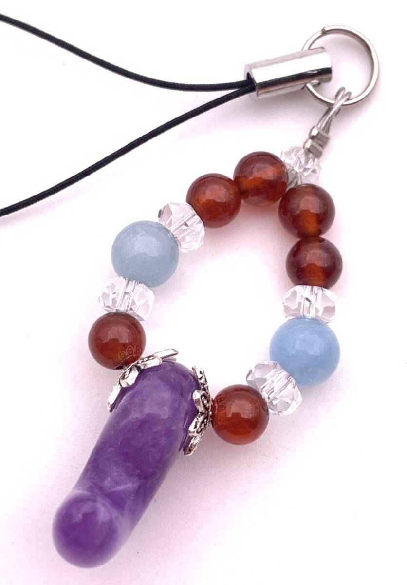 天然石アメジスト勾玉&アクアマリン&ヘソナイト(オレンジガーネット)のストラップ