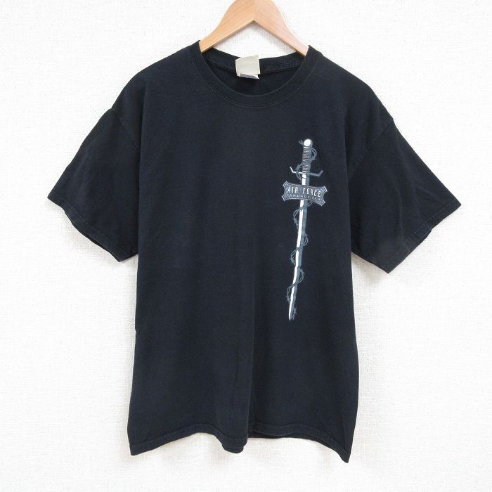 【商品名】 L★古着 半袖 ビンテージ Tシャツ メンズ 00年代 00s エアフォース コットン クルーネック 黒