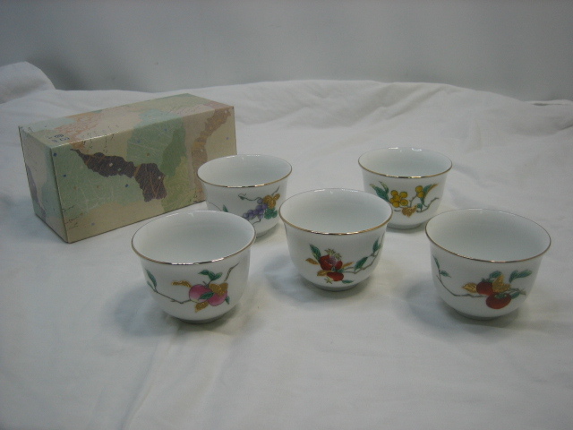 | ◆保管品◆茶器 煎茶碗揃 金採果実 翔優作 湯呑 5客セット◆菅-YU | ||