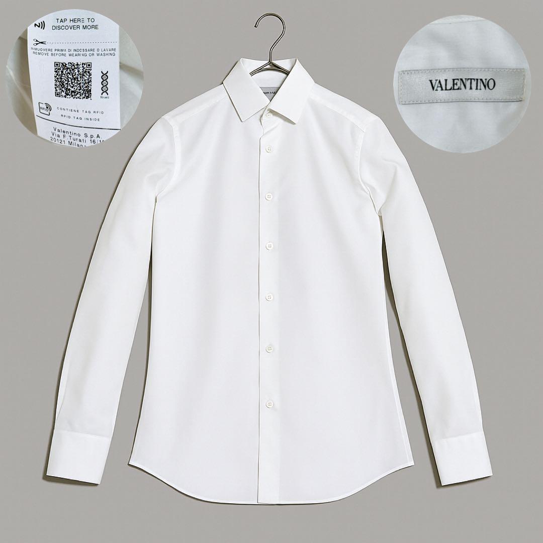 VALENTINO ヴァレンティノ 白シャツ ドレスシャツ 長袖シャツ ビジネスシャツ コットンシャツ RFID認証 正規品 メンズ 39 15 1/2 ホワイト 美品 新作モデル イタリアブランド セレモニー パーティー スーツ フォーマル