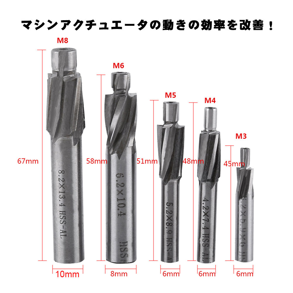 #46N-OLBF 5本セット☆エンドミルカッター HSS-AL高速鋼 座ぐり穴 エンドミル 加工用カッター ハイス鋼 ミリングドリルビットツール 12