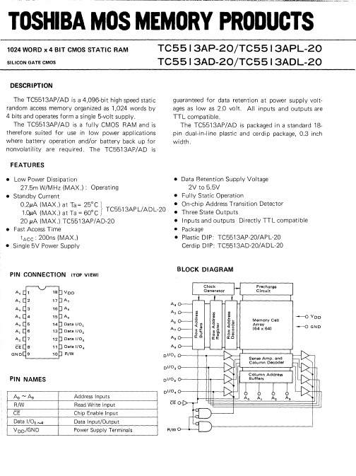 【新品 未使用】東芝 スタティック RAM TC5513APL-20 4K (1024wordx4bit)  2個まとめて  (在庫1組限り)  SRAM 2114
