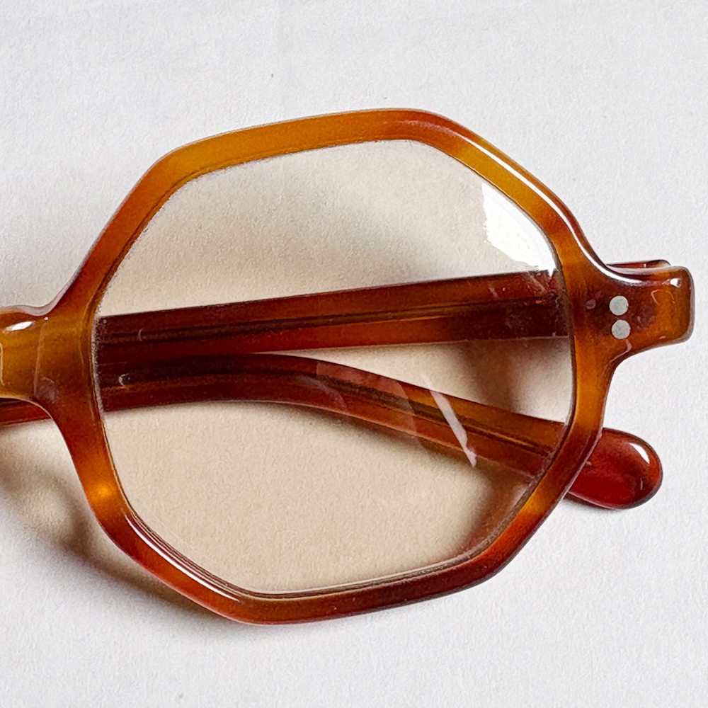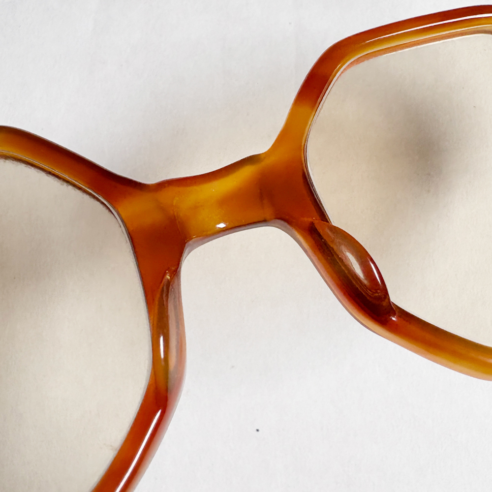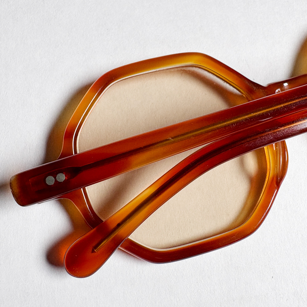 こちらはMADE IN FRANCEの確かなクオリティを有したアイテムで、芯有りタイプの、タートイズ(鼈甲)調のオレンジブラウンカラーセルロイドを採用した、ヴィンテージフレームが存在感抜群!
