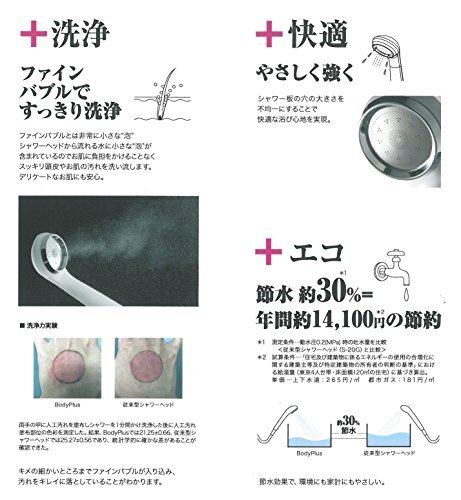 ファインバブルでスッキリ洗浄 軽くて持ちやすいシンプル シャワー板の穴の大きさを不均一にすることで、快適な浴び心地を実現 ホースアダプター付だから大方のメーカーにも対応。 水栓メーカーのシャワーヘッド。