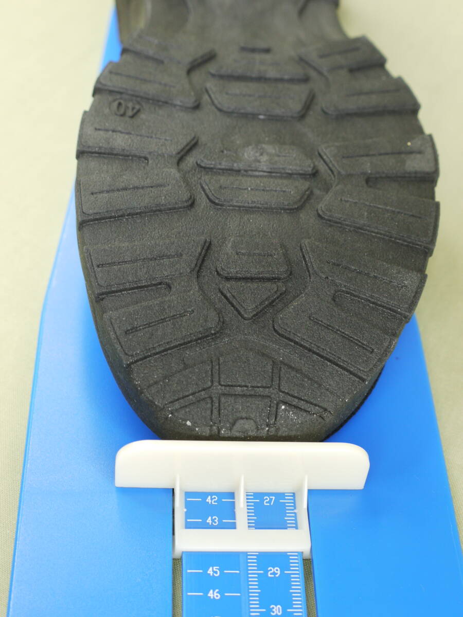 ホ)サイズの合わない靴を無理に履くと外反母趾その他思わぬ障害や怪我をしますので、無理に履かないでください