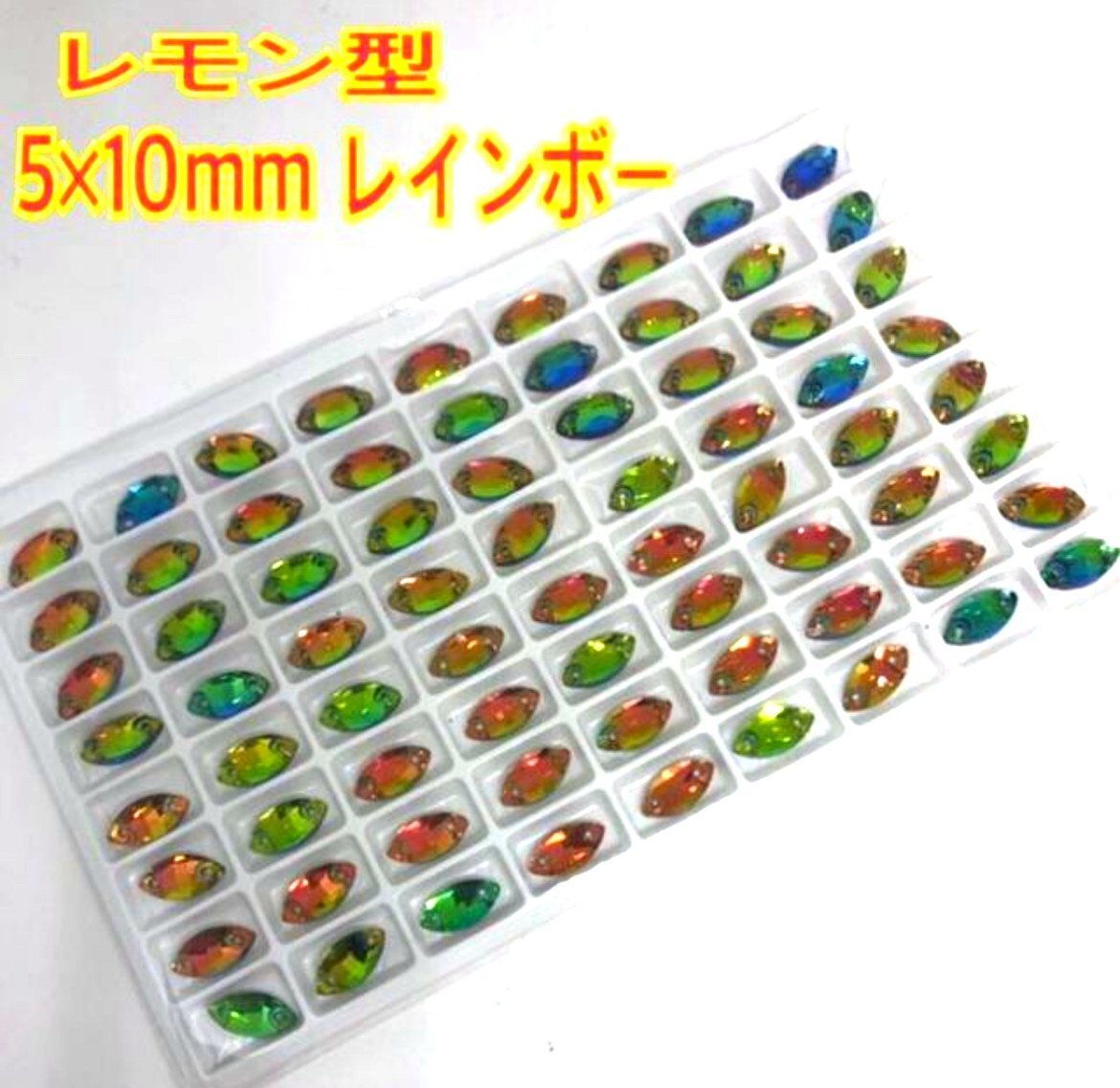 5×10mm 72個 レモン型 ガラスビジュー 装飾用 高輝度 新体操