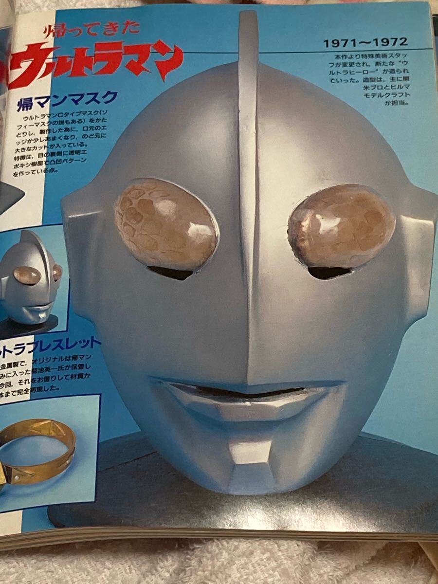 ウルトラマン、ウルトラセブン、帰ってきたウルトラマン等の実際に撮影に使われたオリジナルのマスクやプロップの写真が多数記載された書籍です。