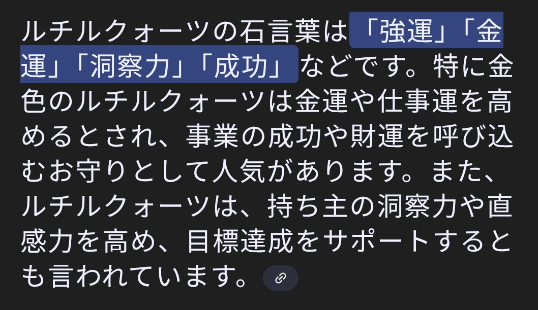 金運:金色のルチルは特に金運を高めるとされ、財運や仕事運を呼び込むと言われています。