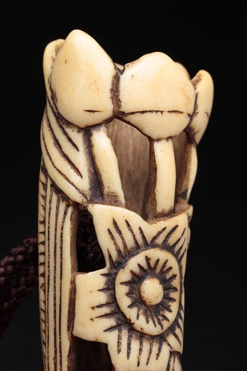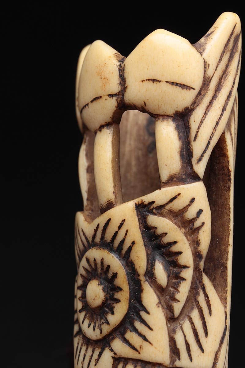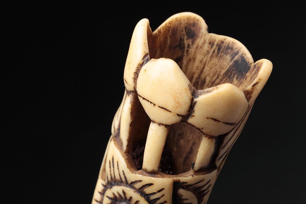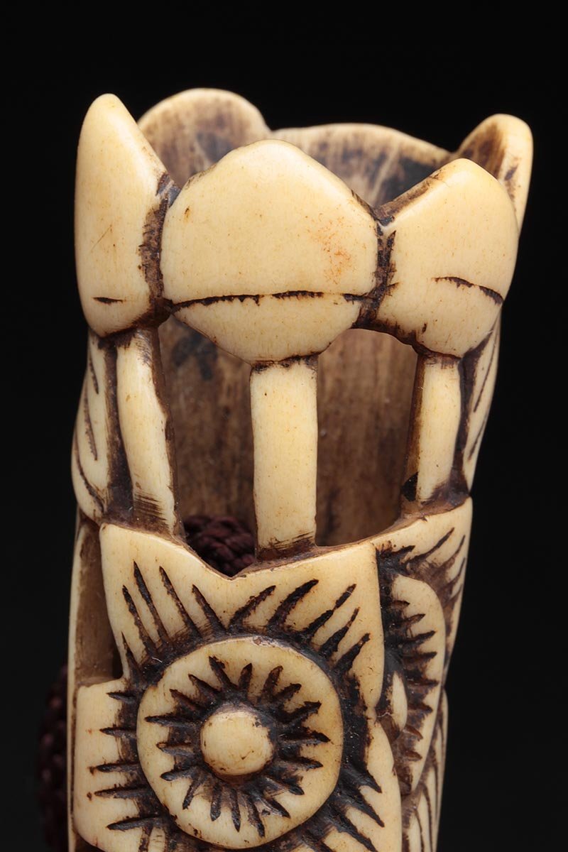 | ◆ 時代提げ物 古骨彫「花透」根付 高5.7cm・古角根付・古根付 印籠 煙草入 装飾具 古美術 ◆