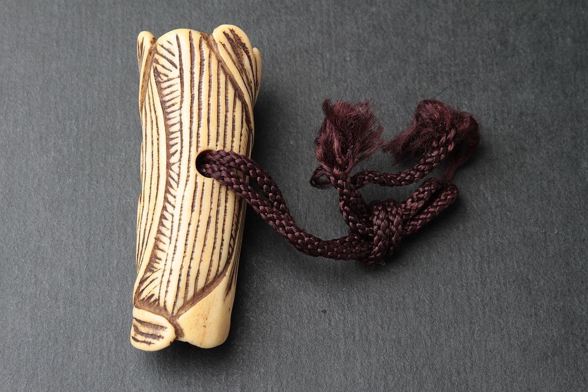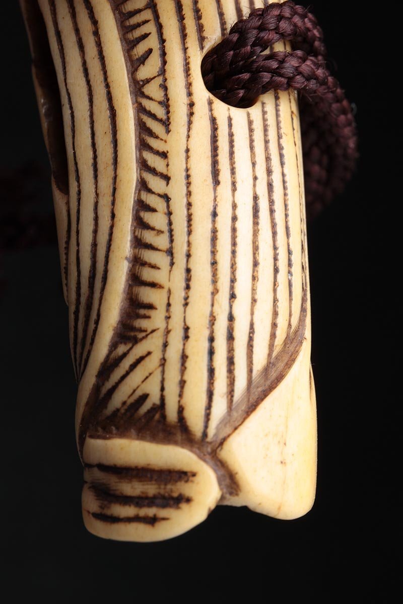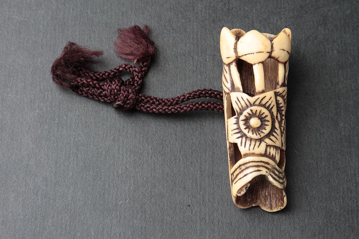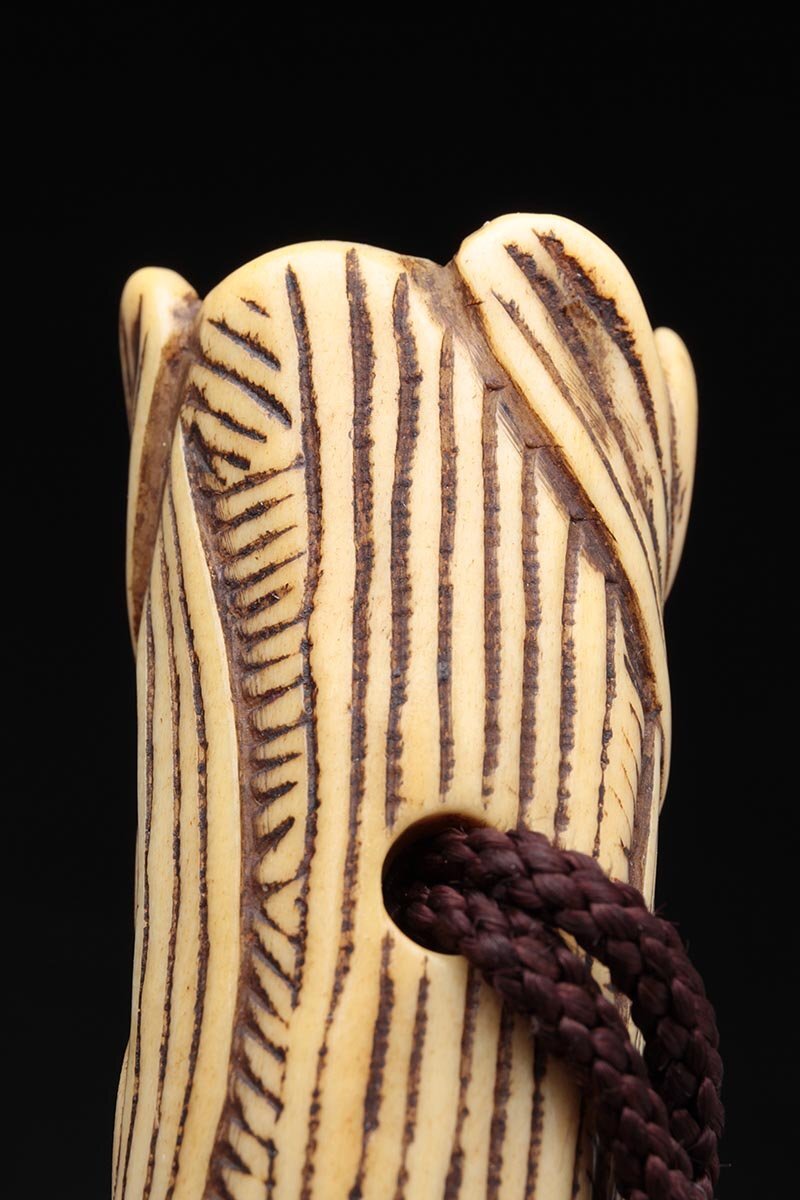 | ◆ 時代提げ物 古骨彫「花透」根付 高5.7cm・古角根付・古根付 印籠 煙草入 装飾具 古美術 ◆