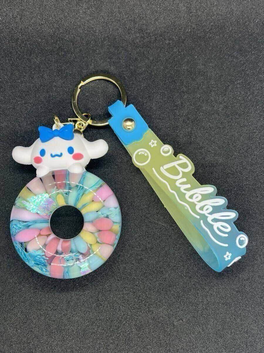 こちらはシナモンロールのキーホルダーです。ストラップ、マスコット、チャームとしてもお使いいただけます。サンリオの人気キャラクター、シナモンのストラップはいかがでしょうか。