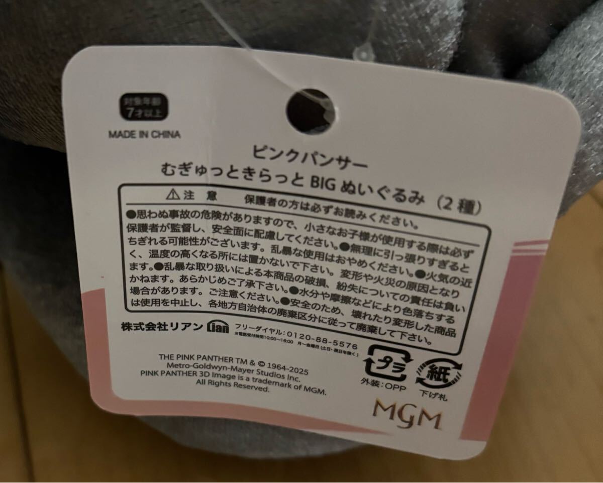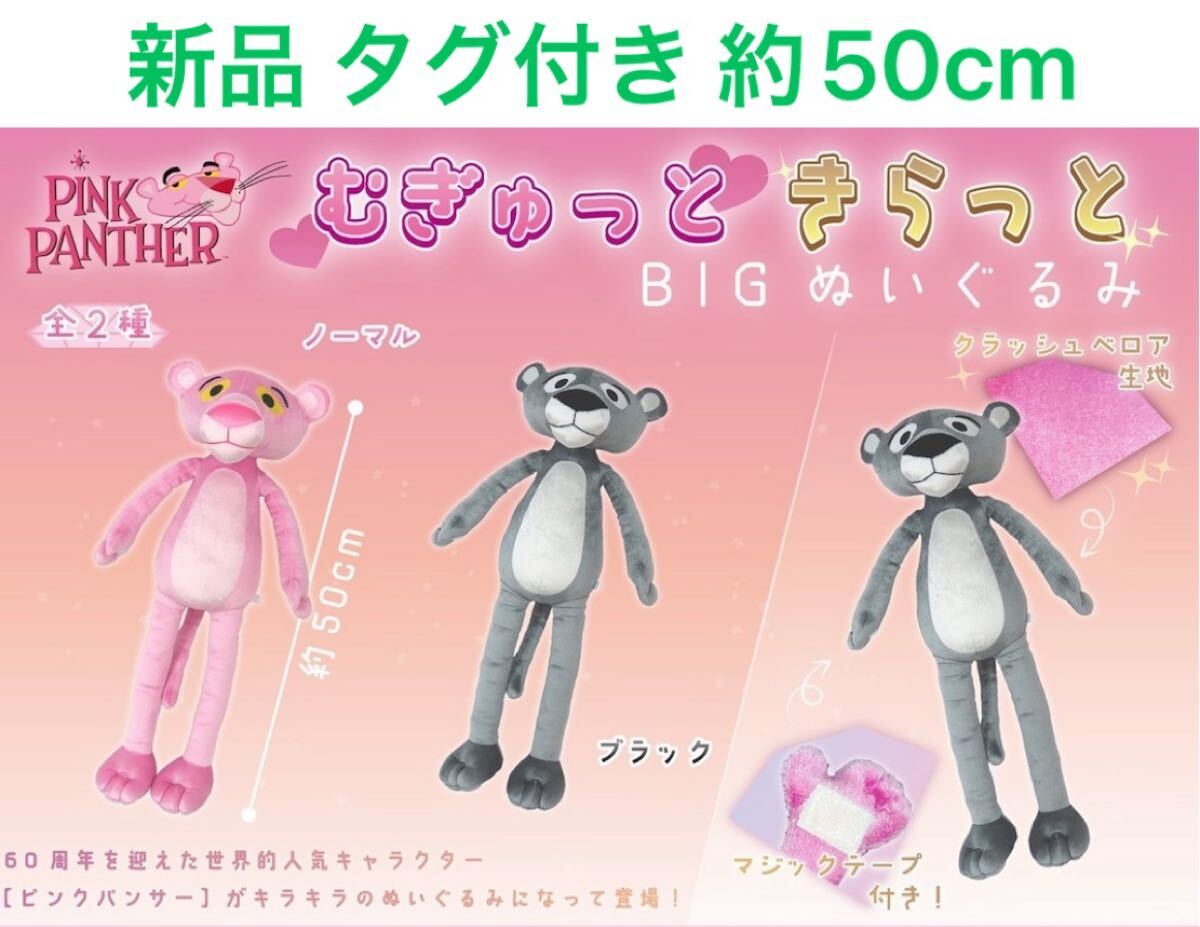 約50cmのピンクパンサーのグレー、きらっとぬいぐるみ