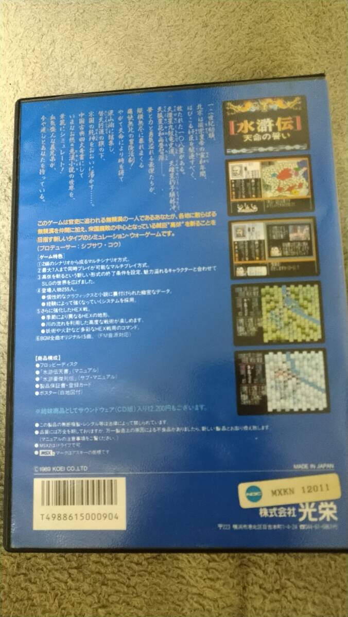 懐かしのMSX2対応ゲーム「水滸伝 天命の誓い」 箱説付き 3.5"2DD です。