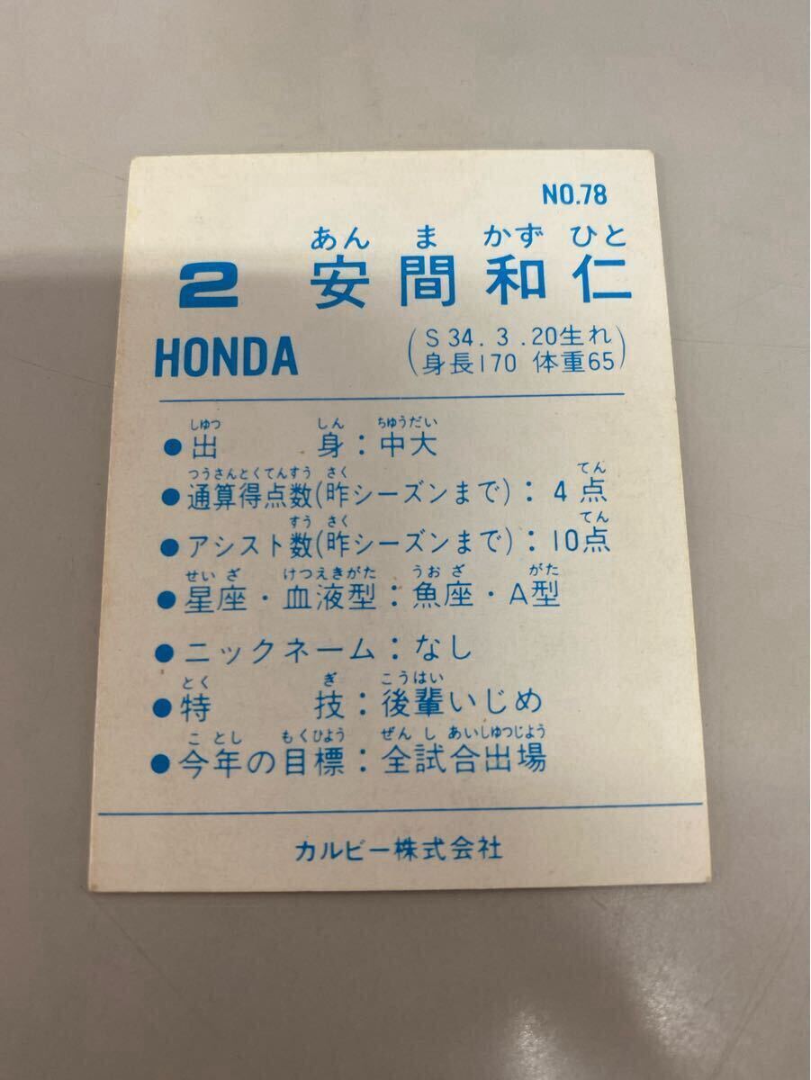 カルビー 日本リーグ サッカー 1987-88 No78 安間和仁 NO版 Aタイプ
