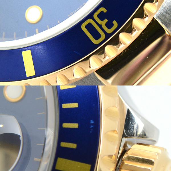 Comment スタッフからのコメント![]() 中古A級品。傷・汚れが比較的少なく、不快感を感じずにお使いいただける中古商品です。 ☆ ロレックス SS×750YG 16613 サブマリーナのご紹介です。 ☆ ロレックスの定番スポーツモデル「サブマリーナ」のメンズ腕時計になります。 ☆ シンプルなデザインながら存在感のある本格ダイバーズウォッチです。 ☆ デイト表示や逆回転防止ベゼル、300m防水が搭載されております。 ☆ ロレックス不動の定番人気ウォッチになり、普段使いからビジネスシーンまで幅広く活躍します。 ☆ 文字盤 ベゼルは人気のブルーカラーになっております。 ☆ 素材はステンレス×750YGのコンビとなっており高級感がございます。 ☆ 弊社提携修理工房にてオーバーホール ポリッシュを行っておりますので大変綺麗で良好なコンディションとなっております。 ☆ 付属品として冊子類がございます。 ◆ 3時・5時・7時方向のガラス縁に目視では確認が困難な程度の極小の欠けがございます。 ◆ リューズに小傷があり、ケースサイドや裏蓋、ベルト表面にポリッシュでは取り切れない薄い線傷がございます。 ◆ ベゼル表面数カ所に小傷、線傷がある箇所がございます。 ◆ 冊子類以外の付属品はございませんので当店で用意したケースにお入れいたします。 ご不明点はお気軽にお問い合わせください。 |