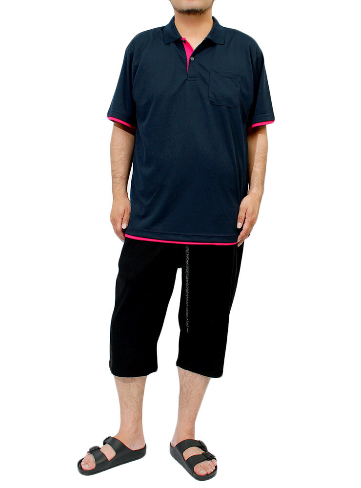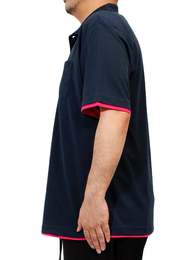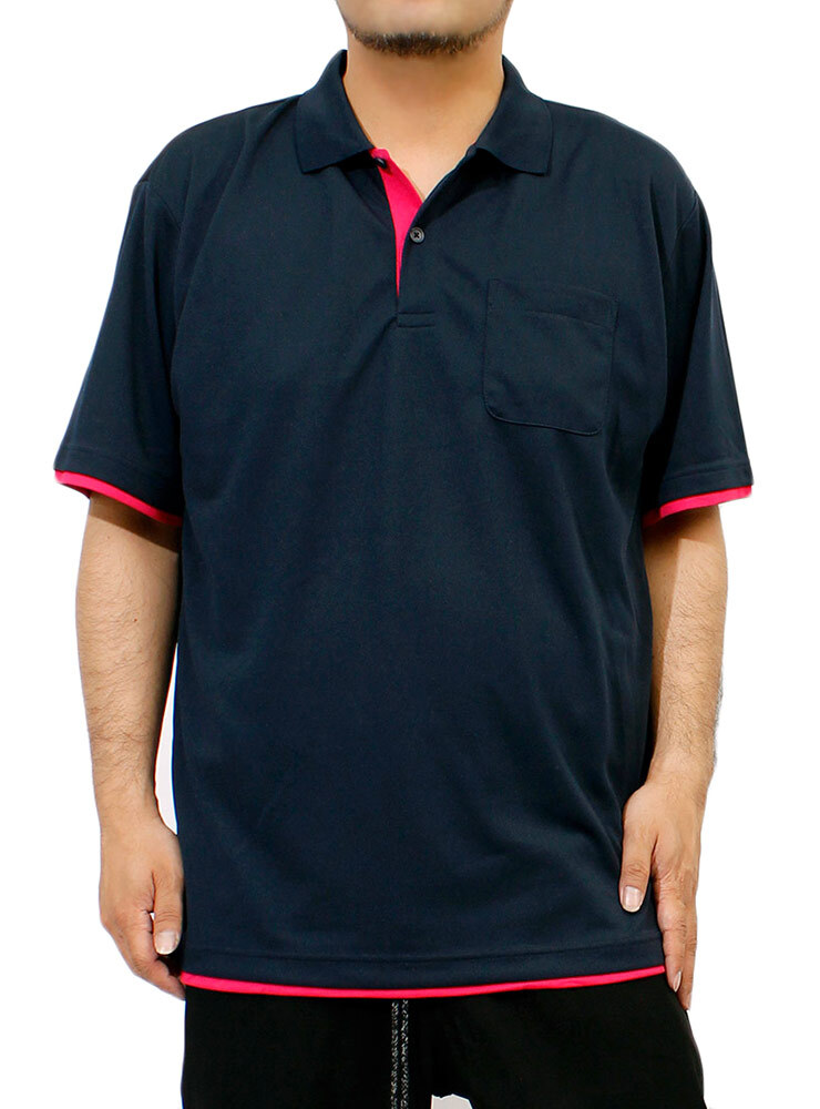 | 商品名 | 【新品】 4L ネイビー×ピンク ポロシャツ メンズ 大きいサイズ 吸汗速乾 ドライ メッシュ UVカット 無地 ポケット付き レイヤード シャツ |