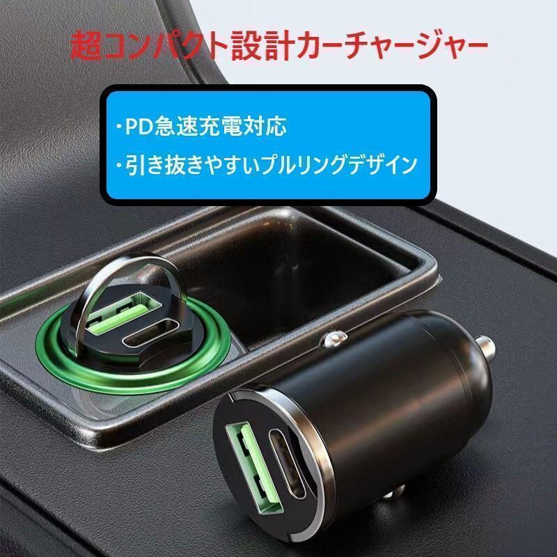新品 極小ステルスタイプ シガーソケット カーチャージャー USB3.0充電器 Type-C タイプC PD充電器 USB-C iPhone スマホ 急速充電 送料無料