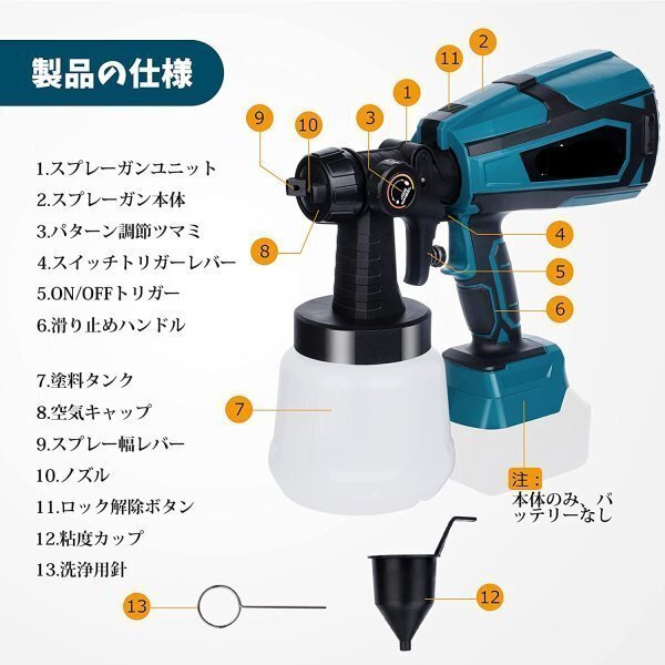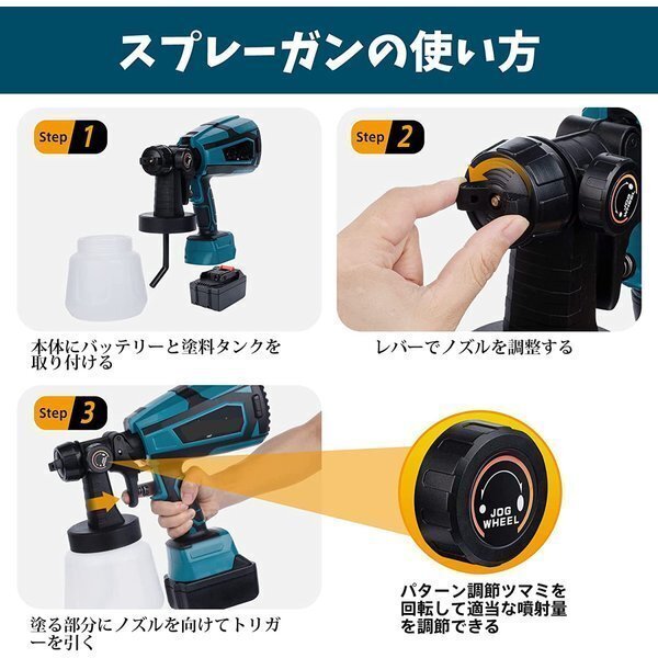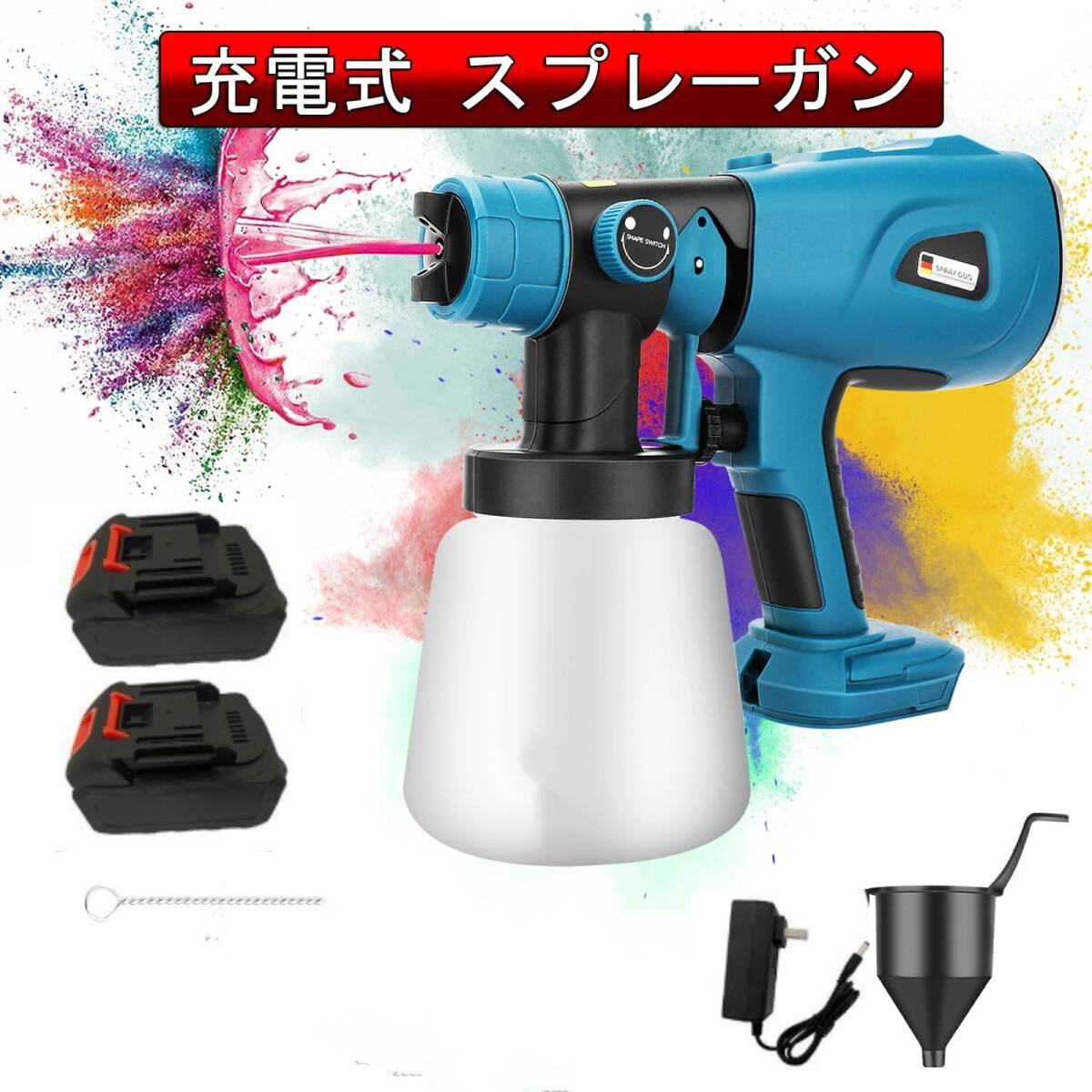 「バッテリー×2」 スプレーガン コードレス 電動スプレーガン マキタ18Vバッテリ ー併用 塗装 噴霧の幅調整可能 1000ml 電動ペインター