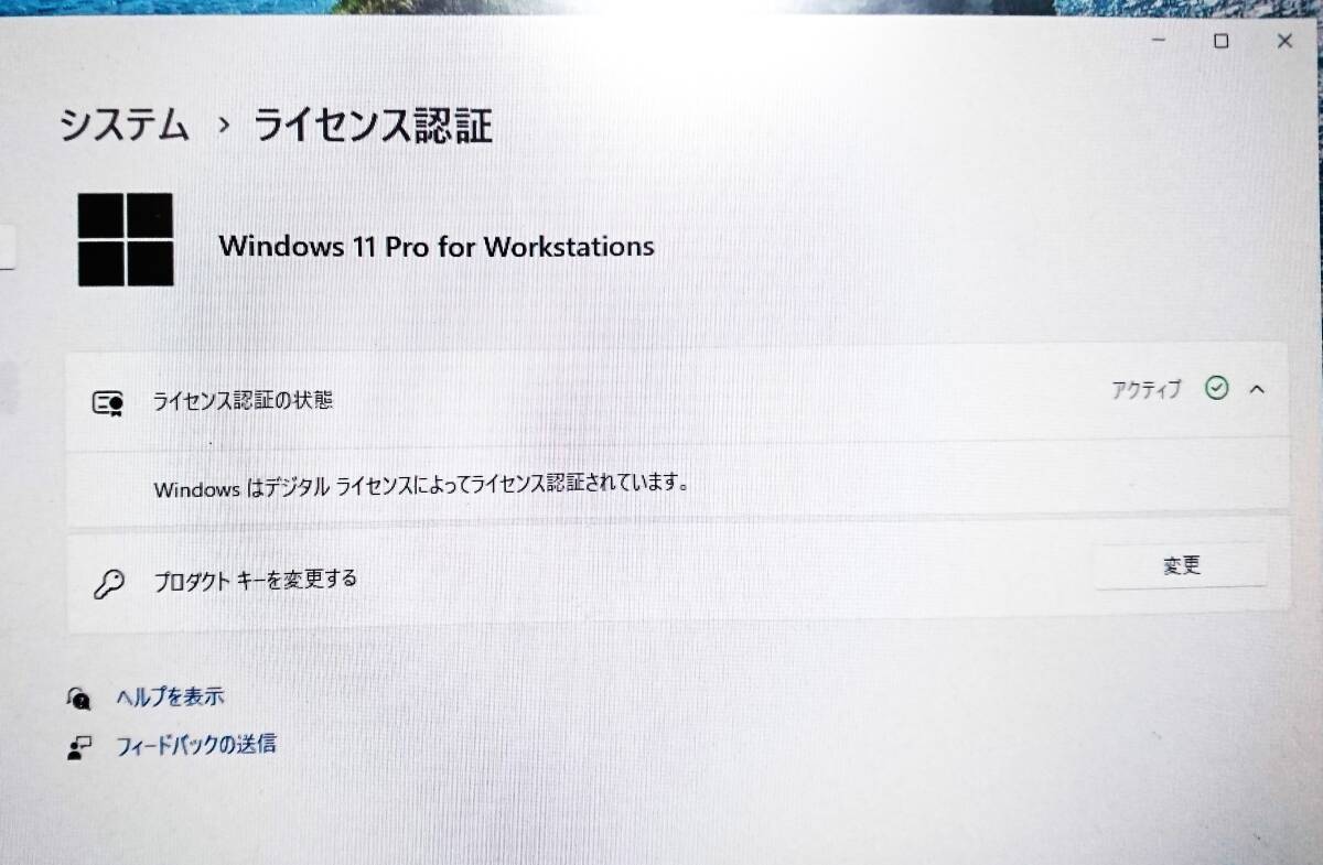 動作検証のためストレージを接続し、「Windows11 Pro Workstations」が正常に認証されることを確認しています(写真参照)。