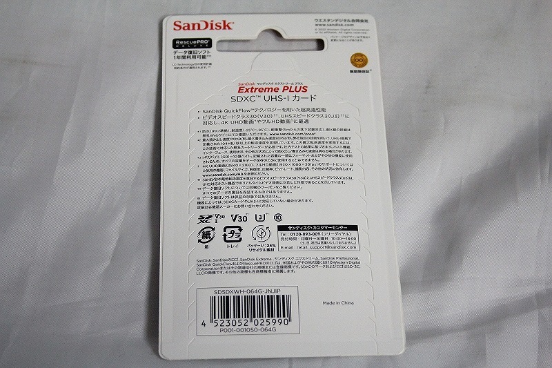 商品名SDXCカード 64GB SDSDXWH-064G-JNJIP