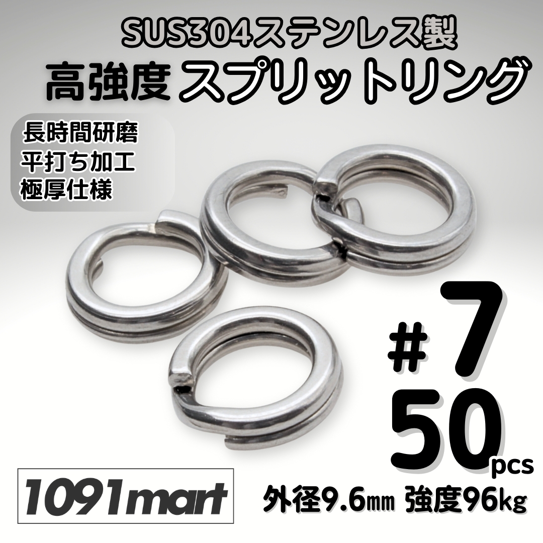 平打ち 強力 スプリットリング #7 50個セット最強素材 SUS304ステンレス製 ソルト対応品 長時間研磨 極厚仕様【1091mart】