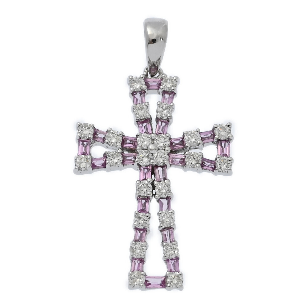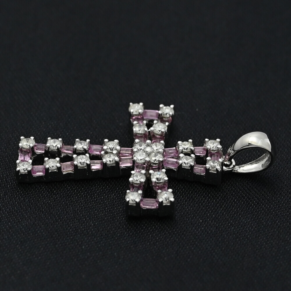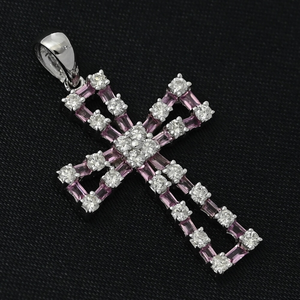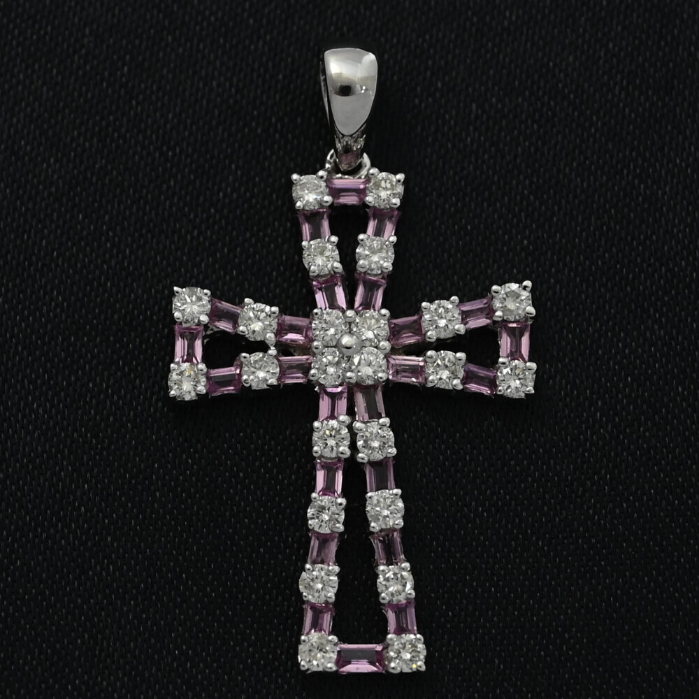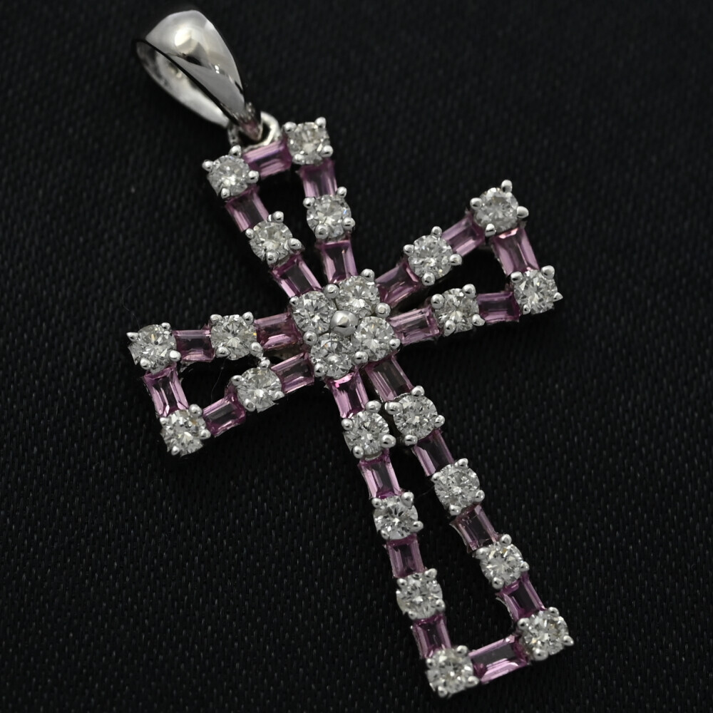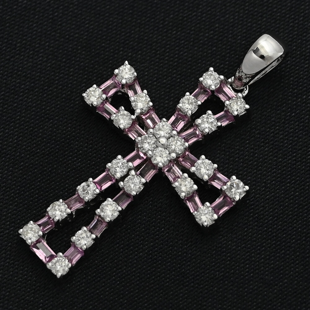 | 0.46ct/FD:0.53ct/クロスモチーフ・ダイヤモンド・ピンクサファイア ペンダントトップ/K18WG/750-2.5g/ホワイトゴールド お問合せ番号 ■589509 (M56A2970L) | |