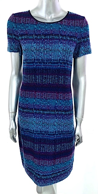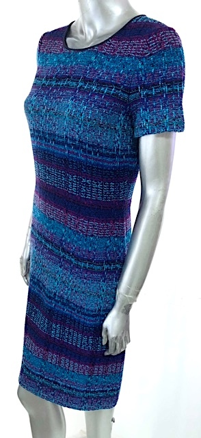 ST. JOHN knit dress multi-color check stripe short sleeve spring summer autumn